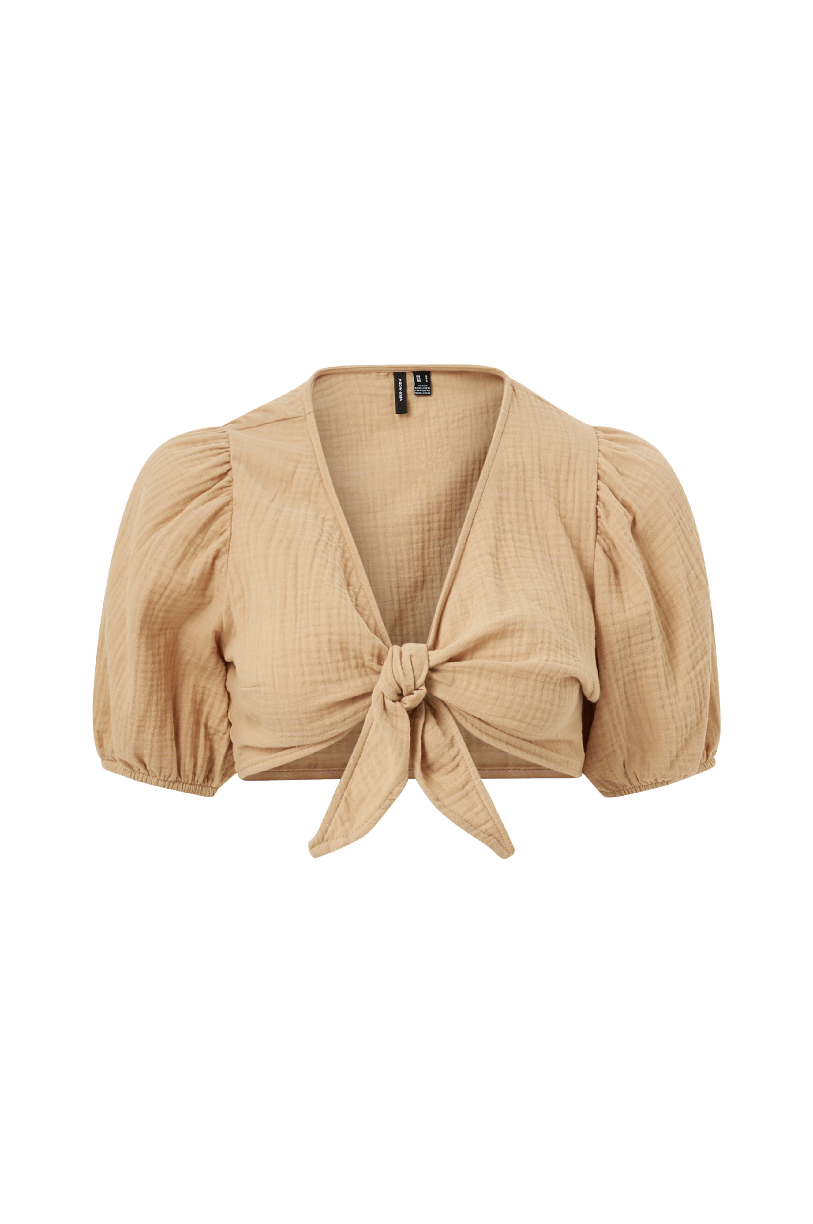 • Kort bluse med bindbart bånd nede foran• Korte ballonærmer• Fremstillet af bomuld med struktur