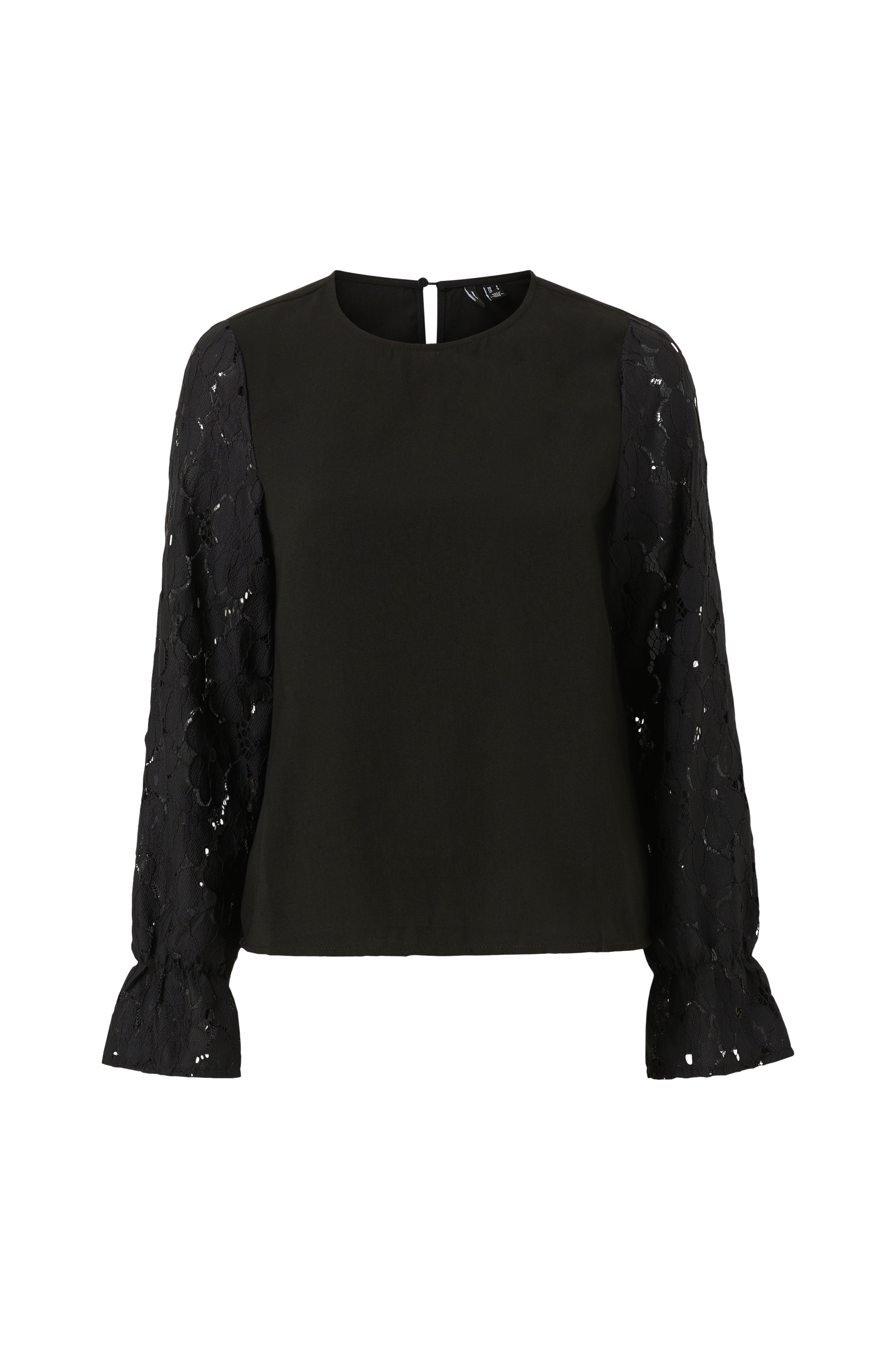 • Lange ærmer i blonde med volant ved manchetterne• Rund hals med ventilation og knap i nakken