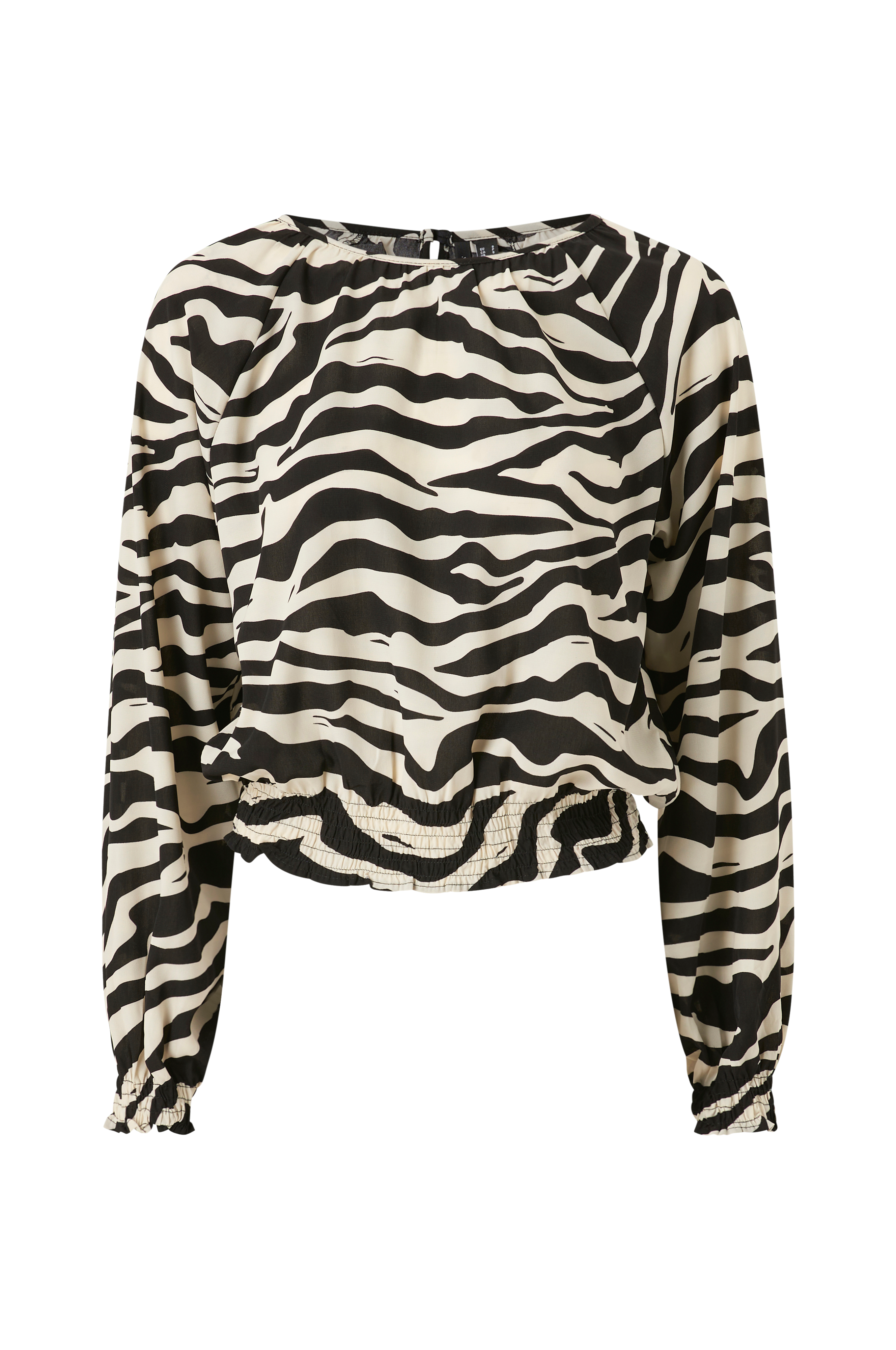 • Zebramønstret bluse• Smock ved manchetterne og nederst• Ventilation med knap i nakken