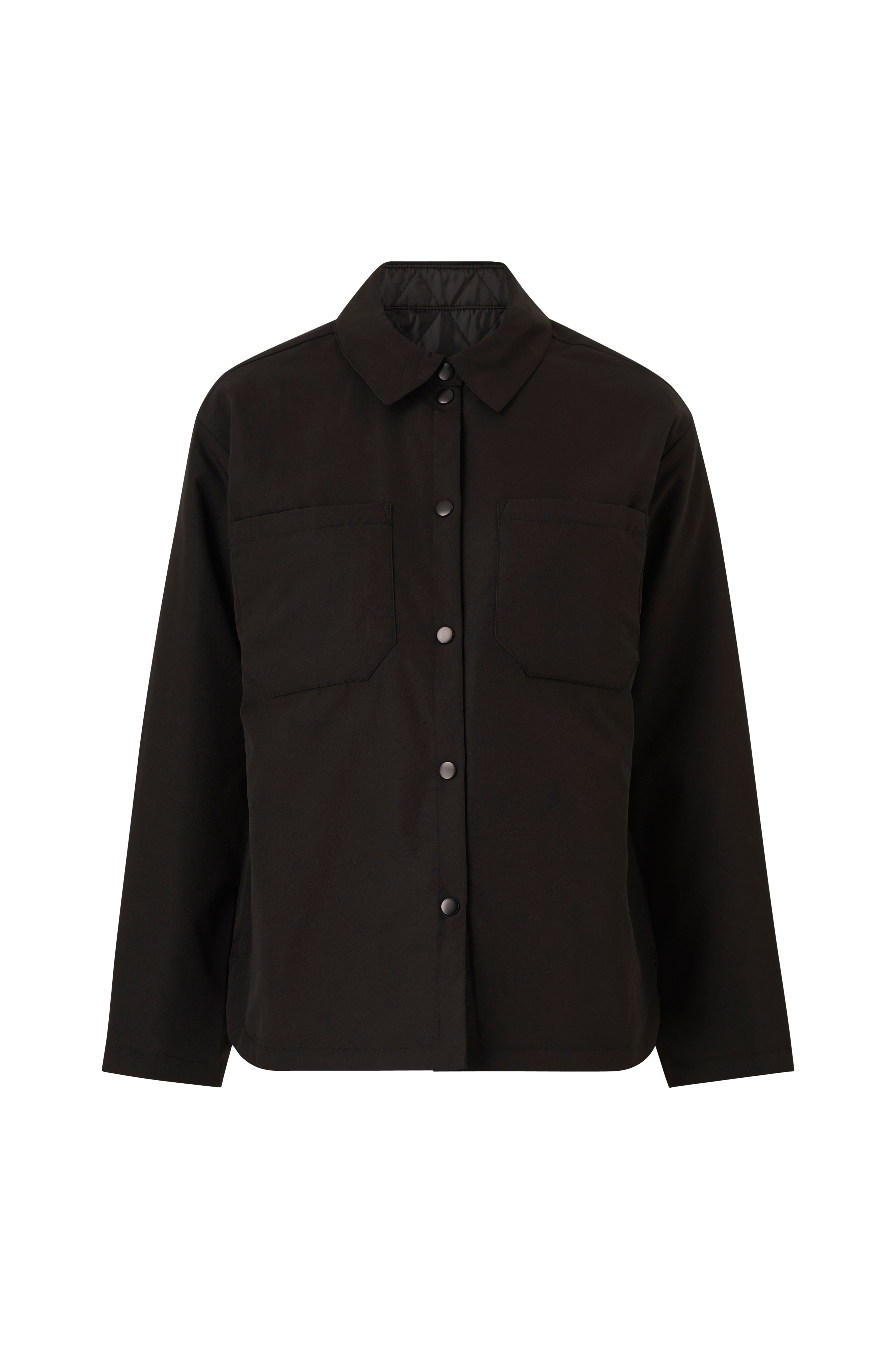 • Vendbar bluse• Den ene side er quiltet og let polstret.• Den anden side er lavet af glat, vævet stof.• Trykknapslukning• To brystlommer på den ene side