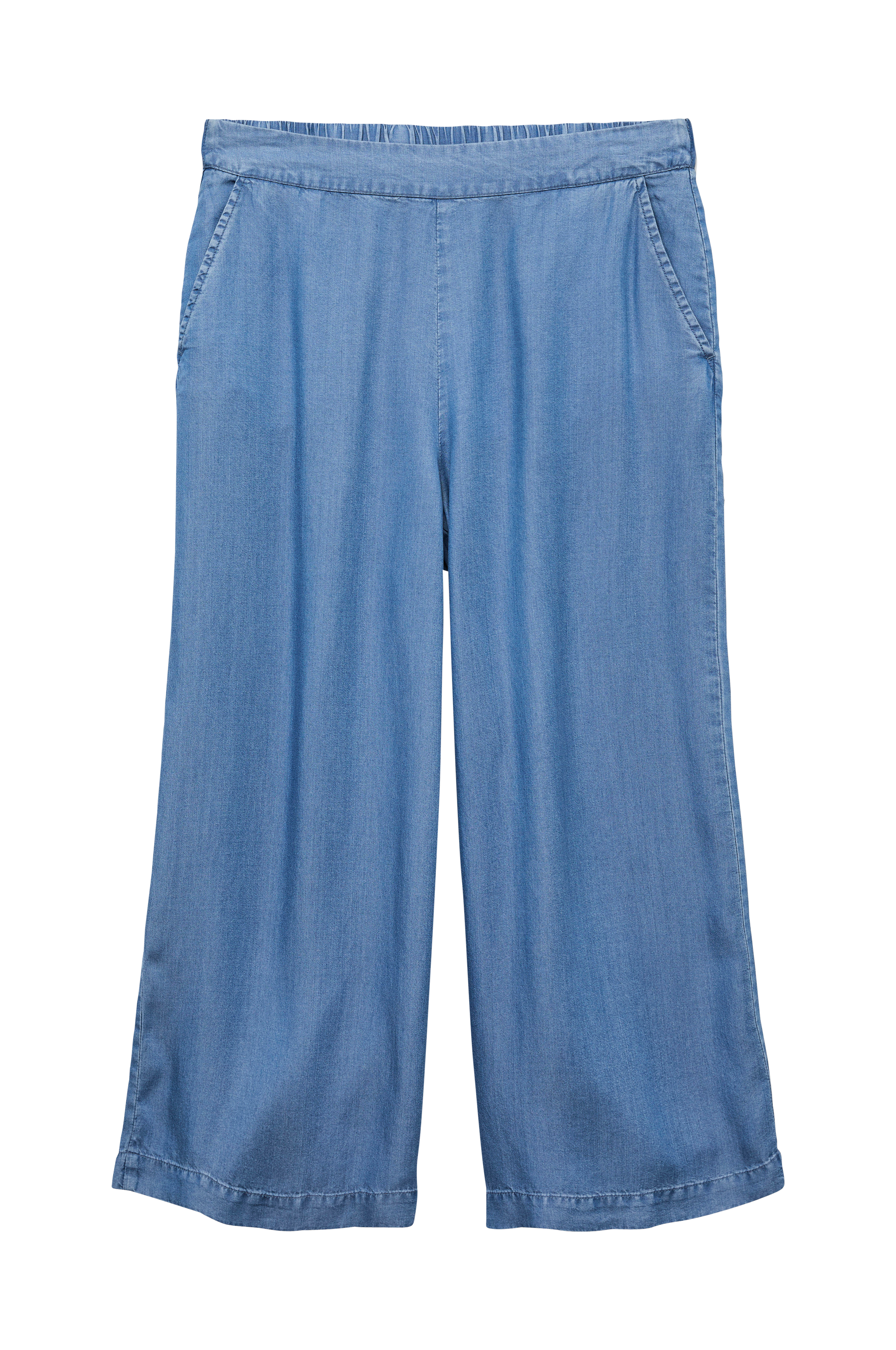 • Model i blødt denim med brede, lige ben