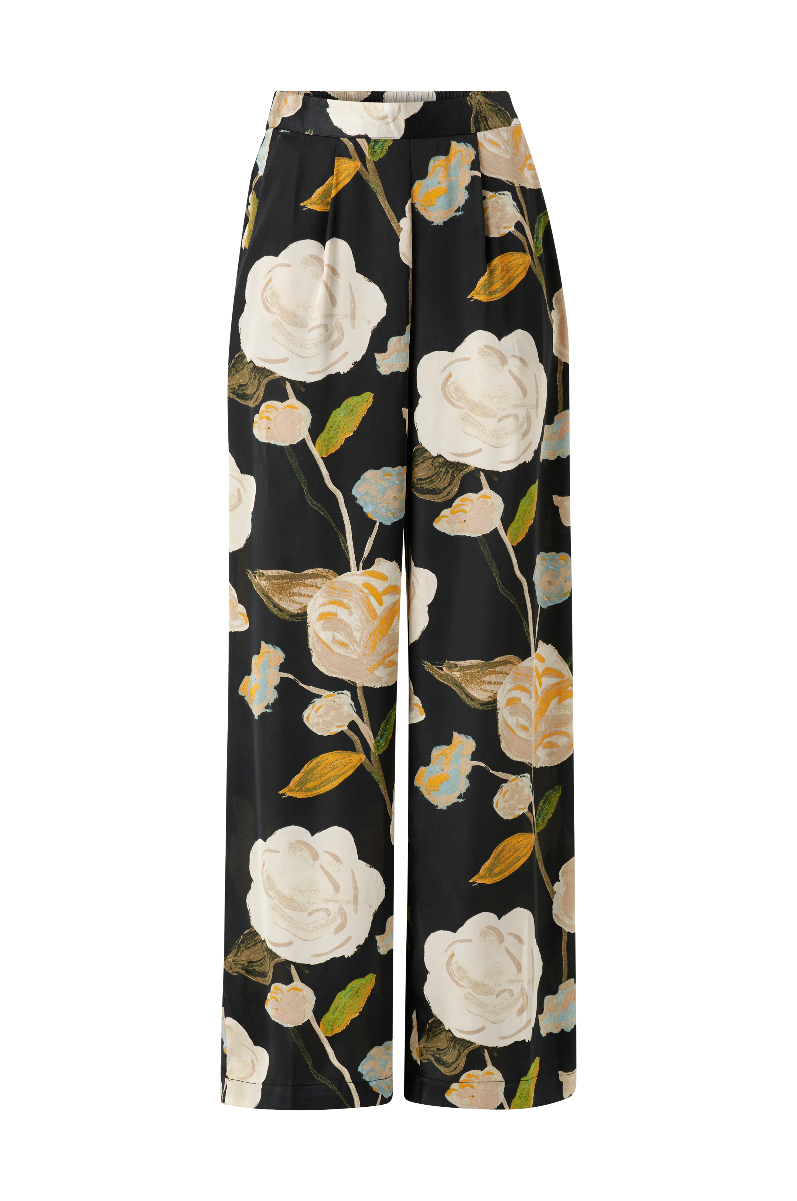 • Brede bukser i satin• Elastik bagpå ved taljen• Lommer i siderne