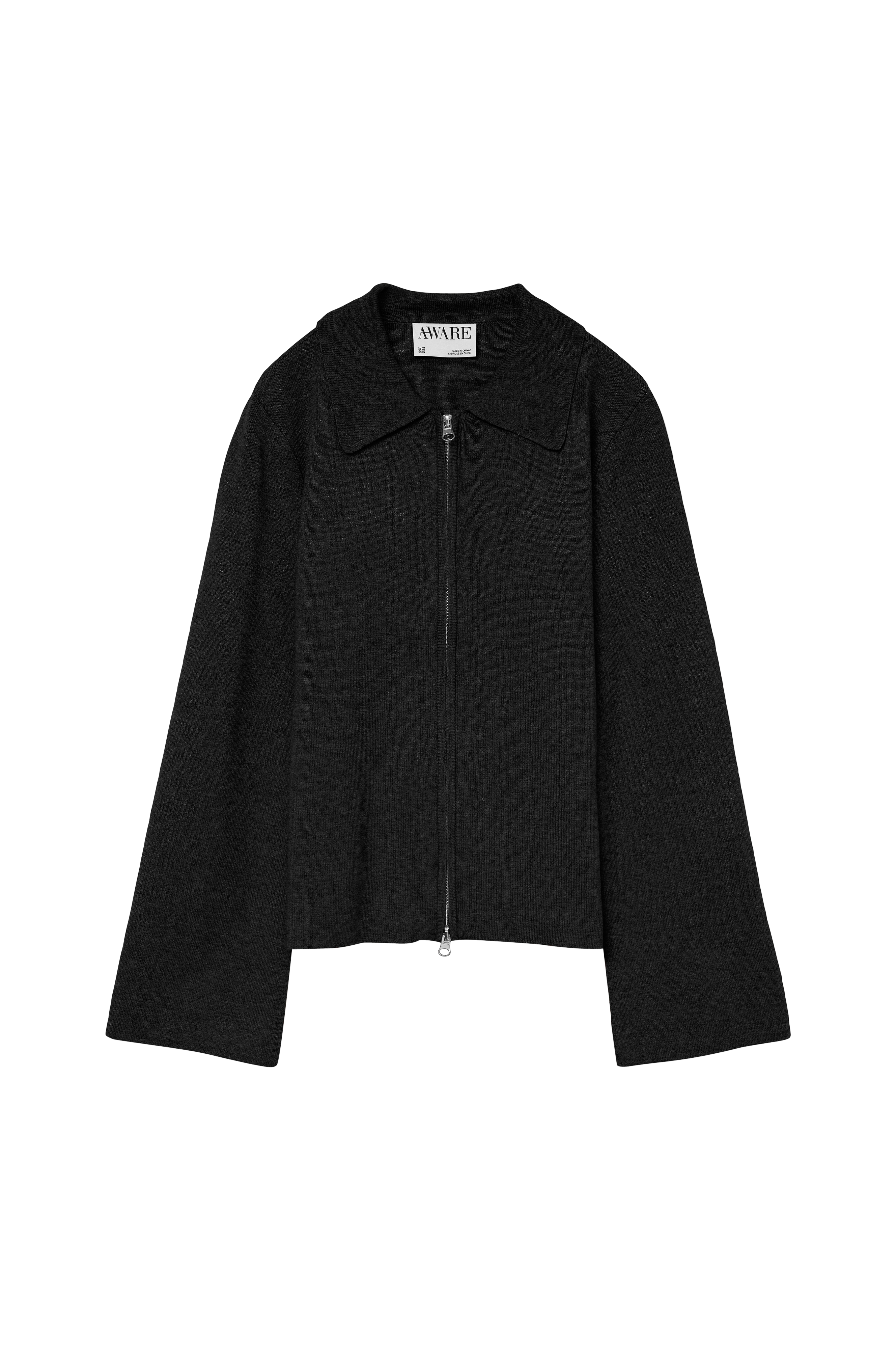 • Elastisk, fintstrikket cardigan med krave• Lange, brede ærmer• To-vejs lynlås foran