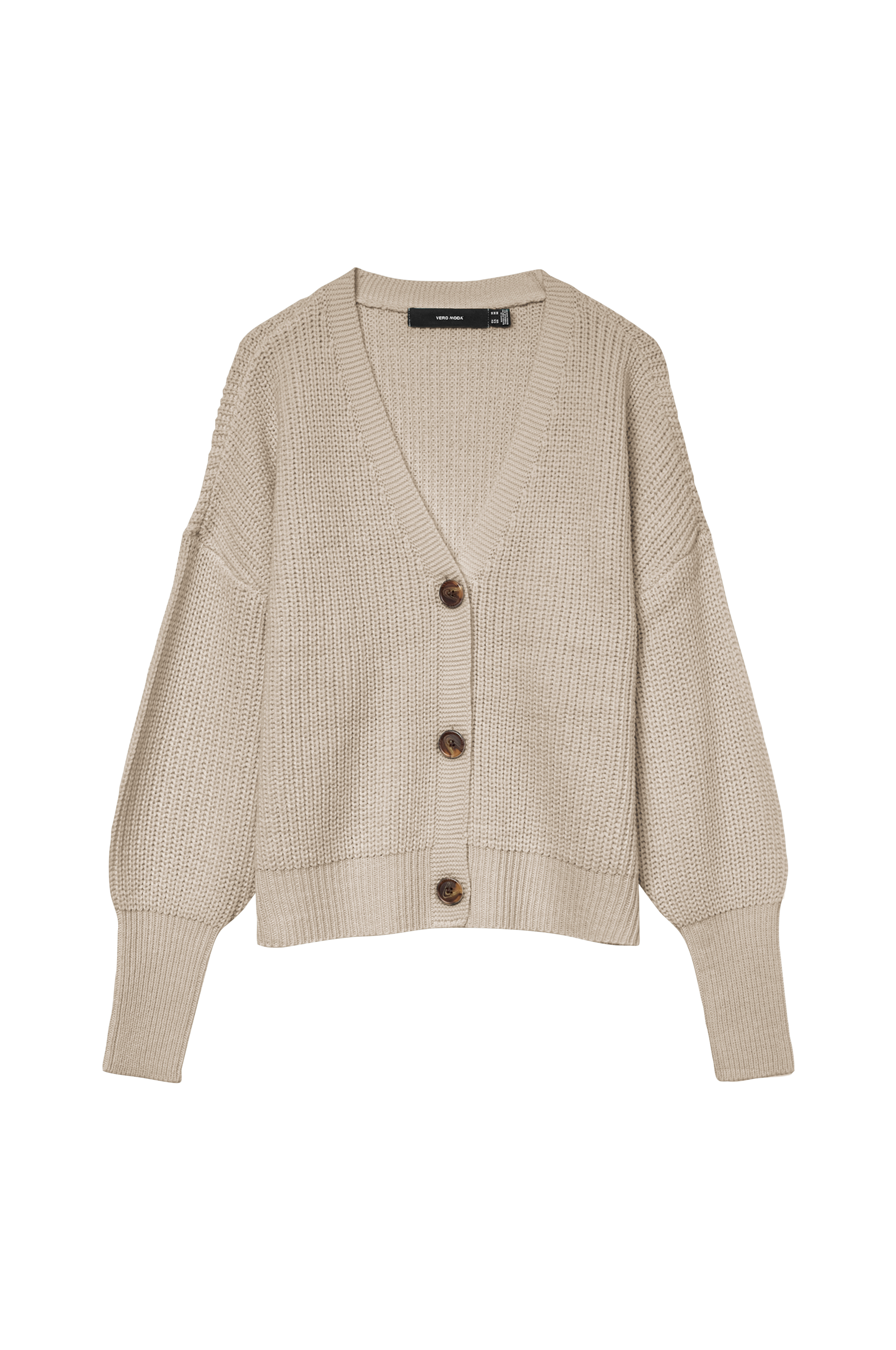 • Oversize model • V-formet halsudskæring • Knapper foran • Bred ribstrik ved manchetterne og nederst • Produktet indeholder genindvundet materiale, som genbruges for at reducere mængden af affald samtidigt med at der ikke anvendes nye ressourcer.