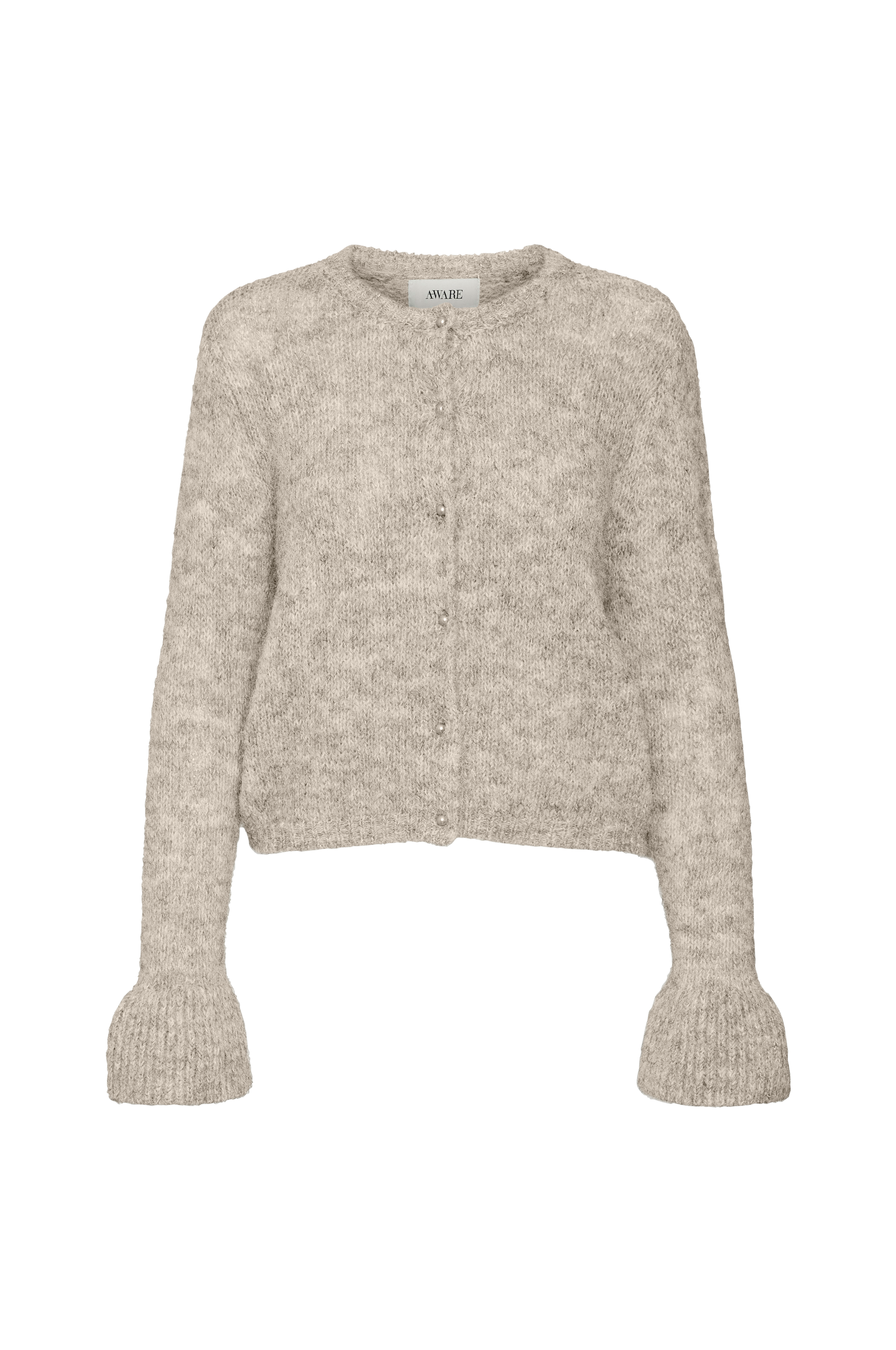 • Langt ærme med ribstrik med svaj ved manchetterne