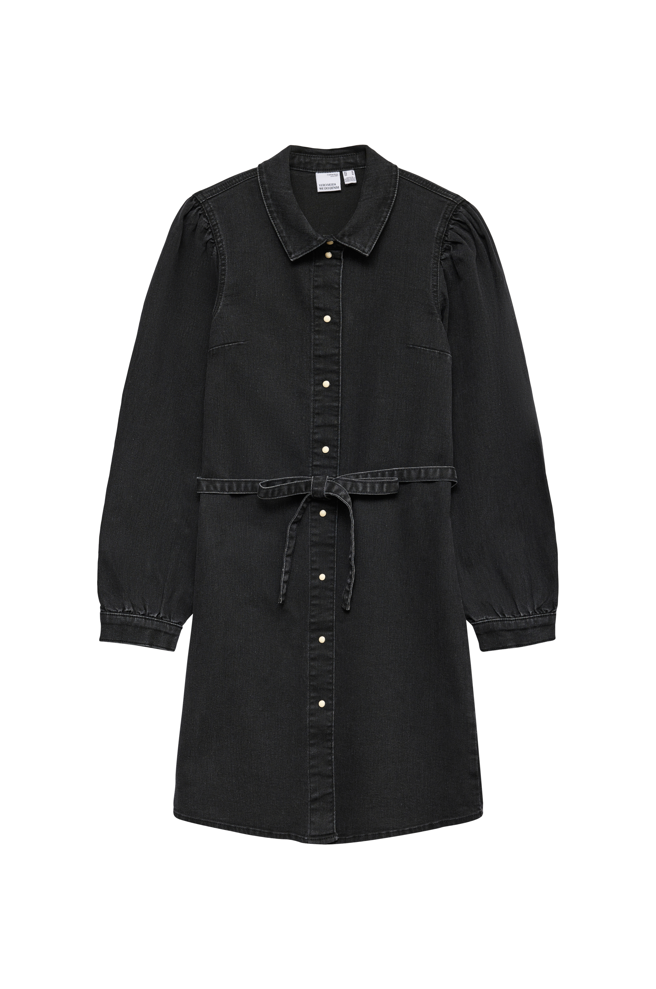• Kort kjole i bomuldsdenim• Klassisk krave• Dekorative knapper foran• Ballonærmer med tynd manchet ved manchetterne• Aftageligt bindebælte ved taljen• Tætsiddende pasform• Længde: 92 cm i størrelse S