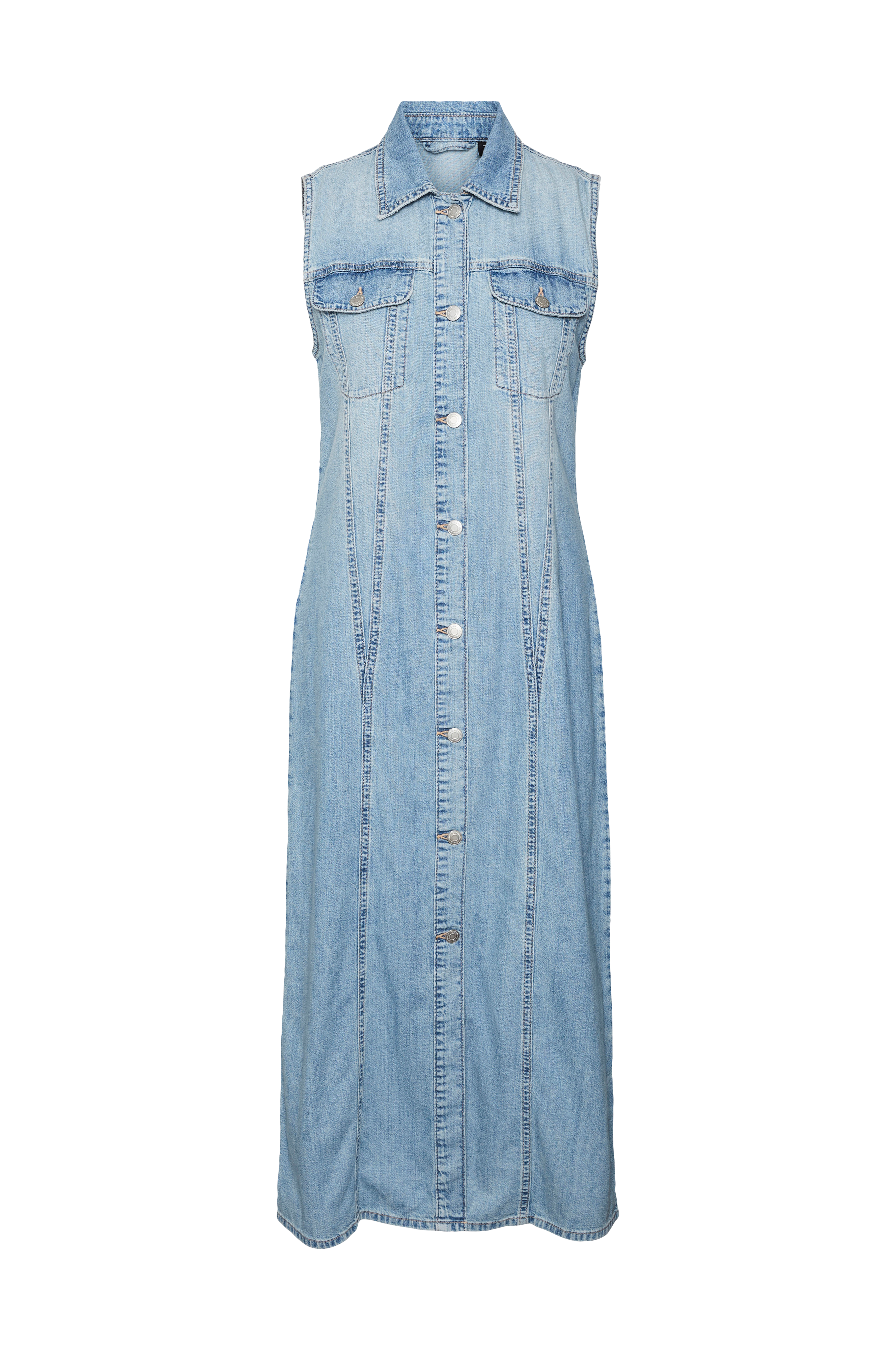 • Ankellang, ærmeløs kjole i denim• Knapper foran• Brystlommer• Længde: 124 cm i størrelse S