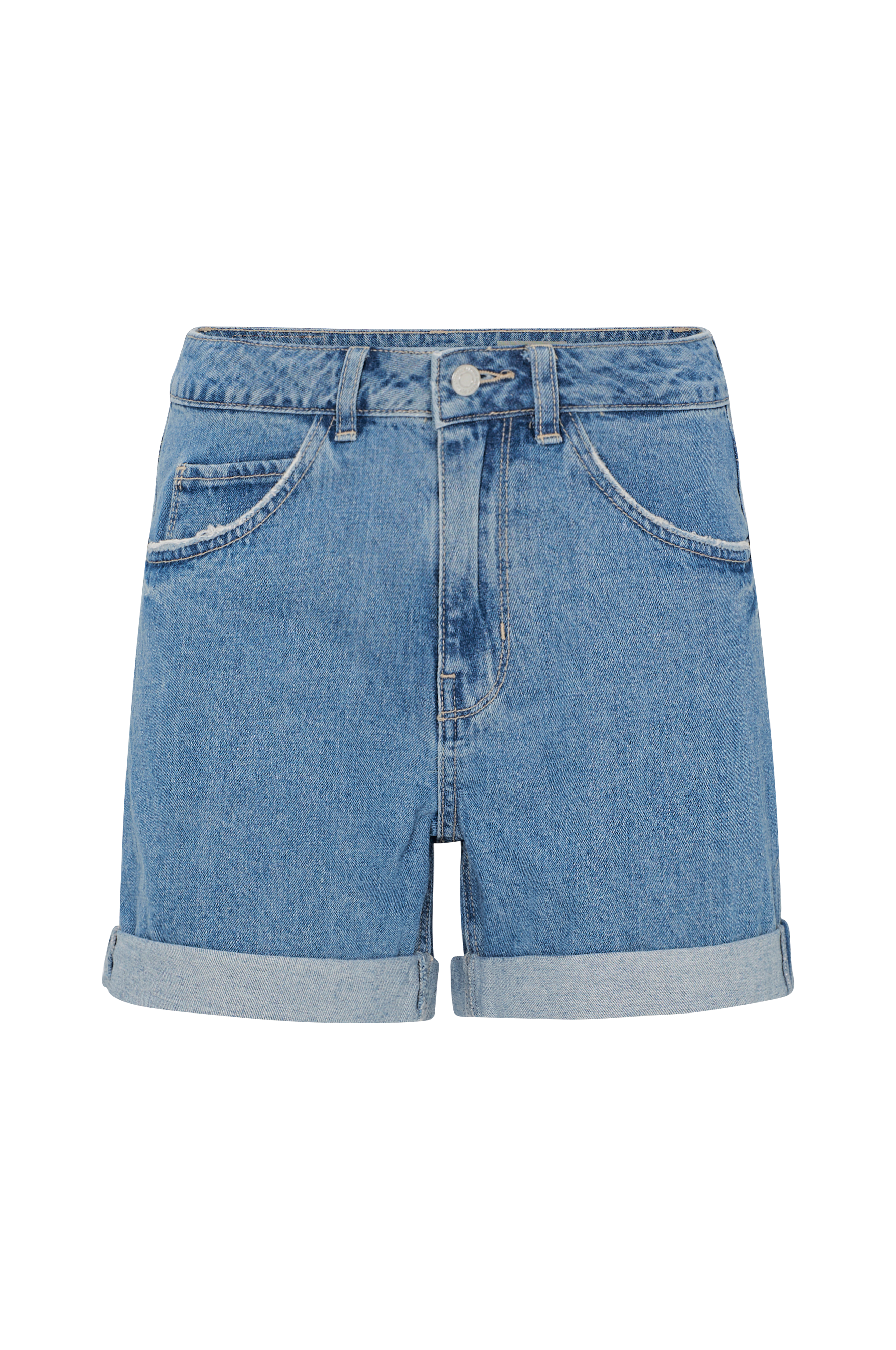 Denimshorts vmNineteen Hr Loose Shorts fra Vero Moda med løs pasform og fast opslag i benkant. 5-lommemodel med slidte effekter på lommerne og gylp med knap og lynlås. Lavet i denim af bomuld. Benlængde 11 cm i str. S.