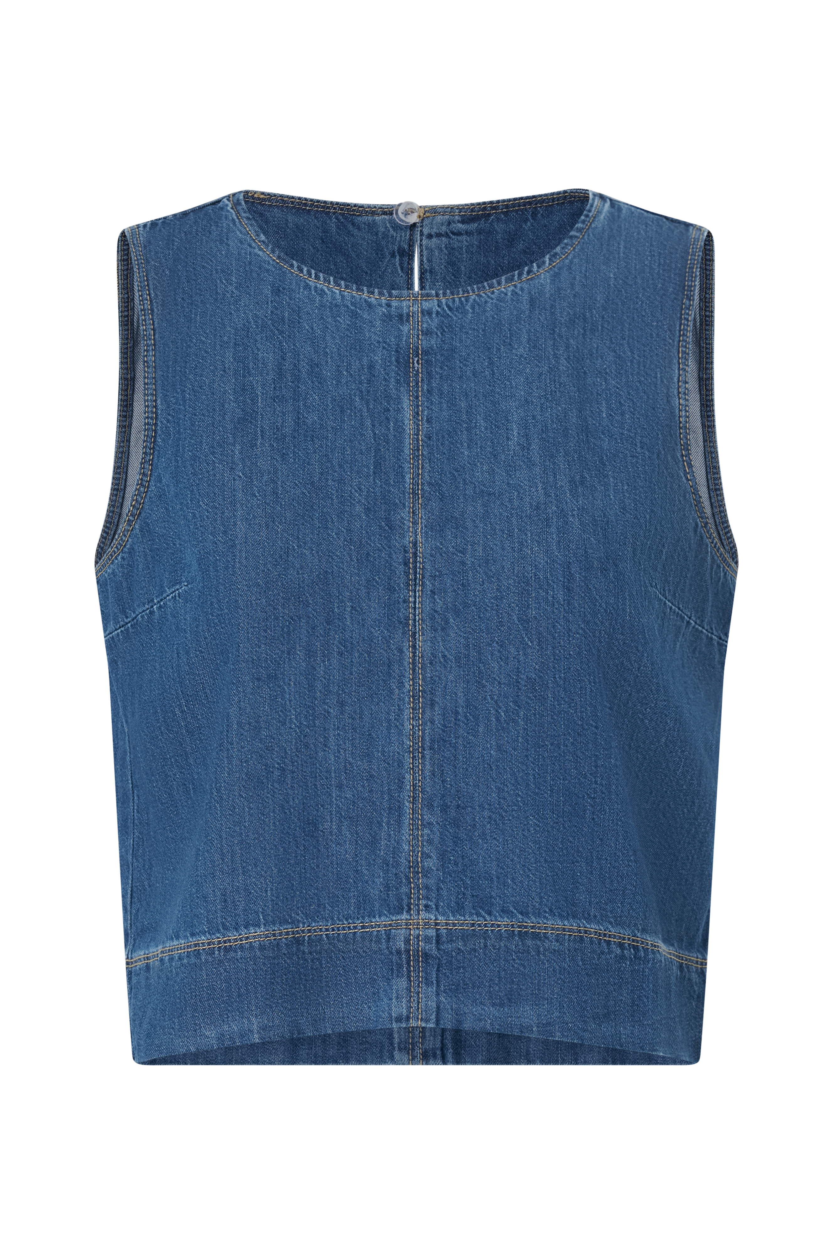 • Ærmeløs top i bomuldsdenim med lige pasform