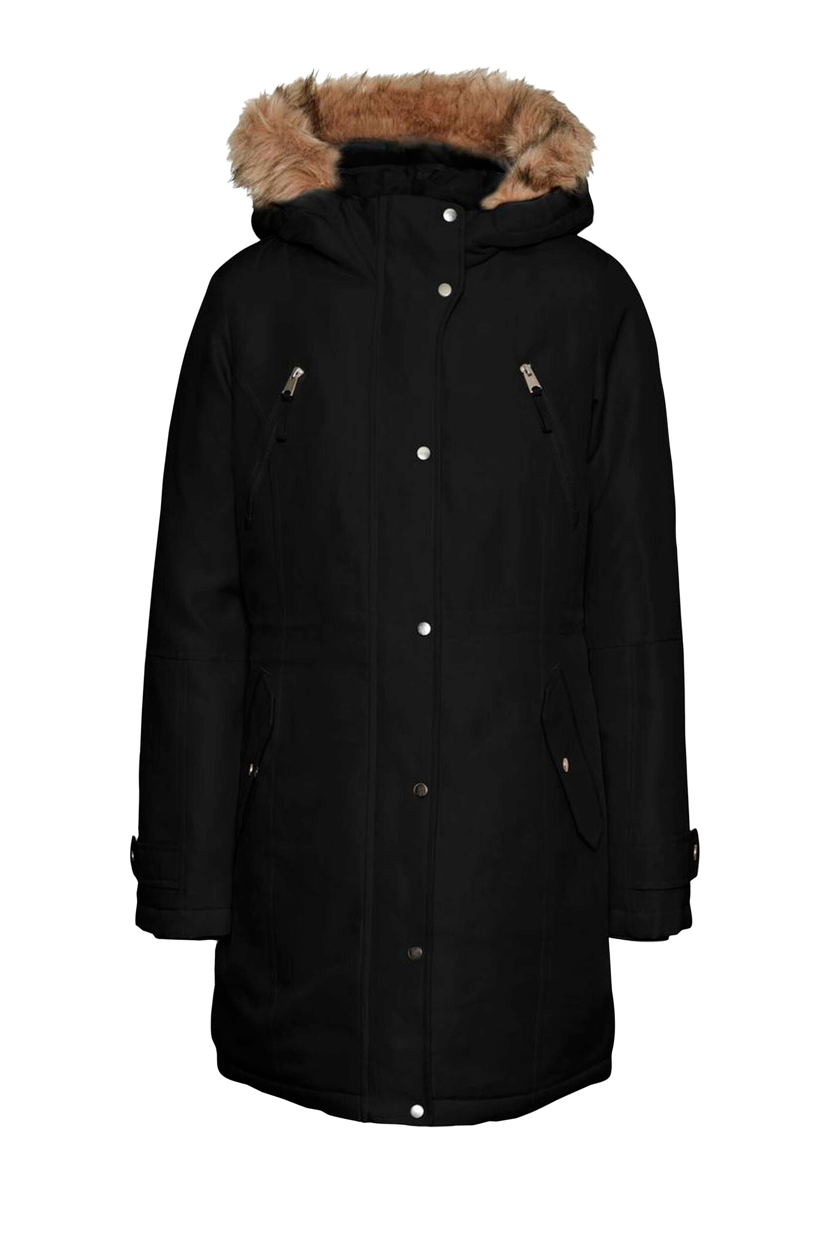 • Foret frakke • Parkadesign • Quiltet for • Fast hætte med aftagelig imiteret pelskant • Lynlås • Vindflap med trykknapper • To lommer nederst med trykknapslukning • To brystlommer med lynlås • Indvendig træksnørre ved taljen • Ribmanchetter ved manchetterne • Længde: 92 cm i størrelse S