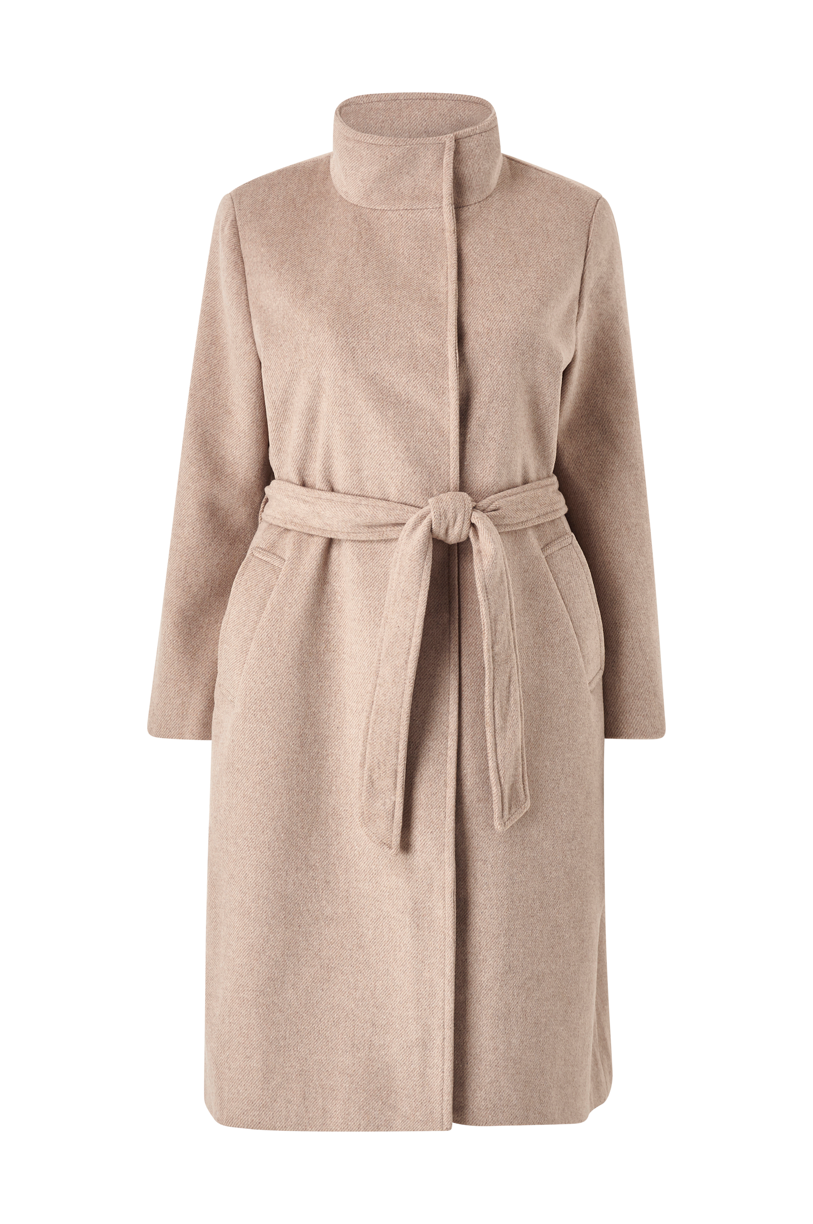 • Stilren frakke med skjulte trykknapper foran• Ståkrave• To lommer• Bindebælte• Slids nede bagved• Længde: 115 cm i størrelse XXL