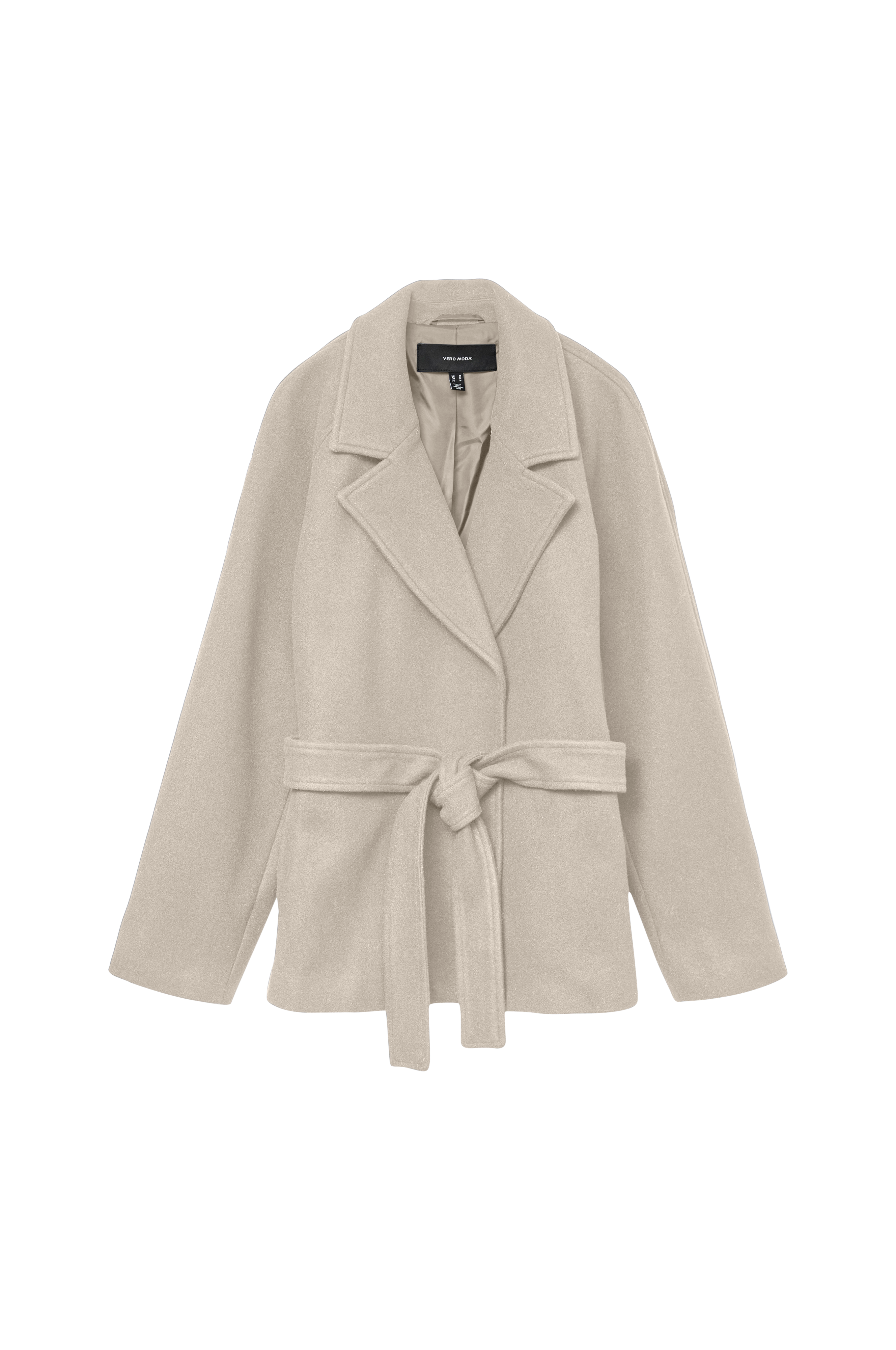 • Kort jakke i filtet kvalitet• Åben, uden knaplukning model• Aftageligt bindebælte• To lommer• Vævet, glat for• Længde: 68 cm i størrelse XS