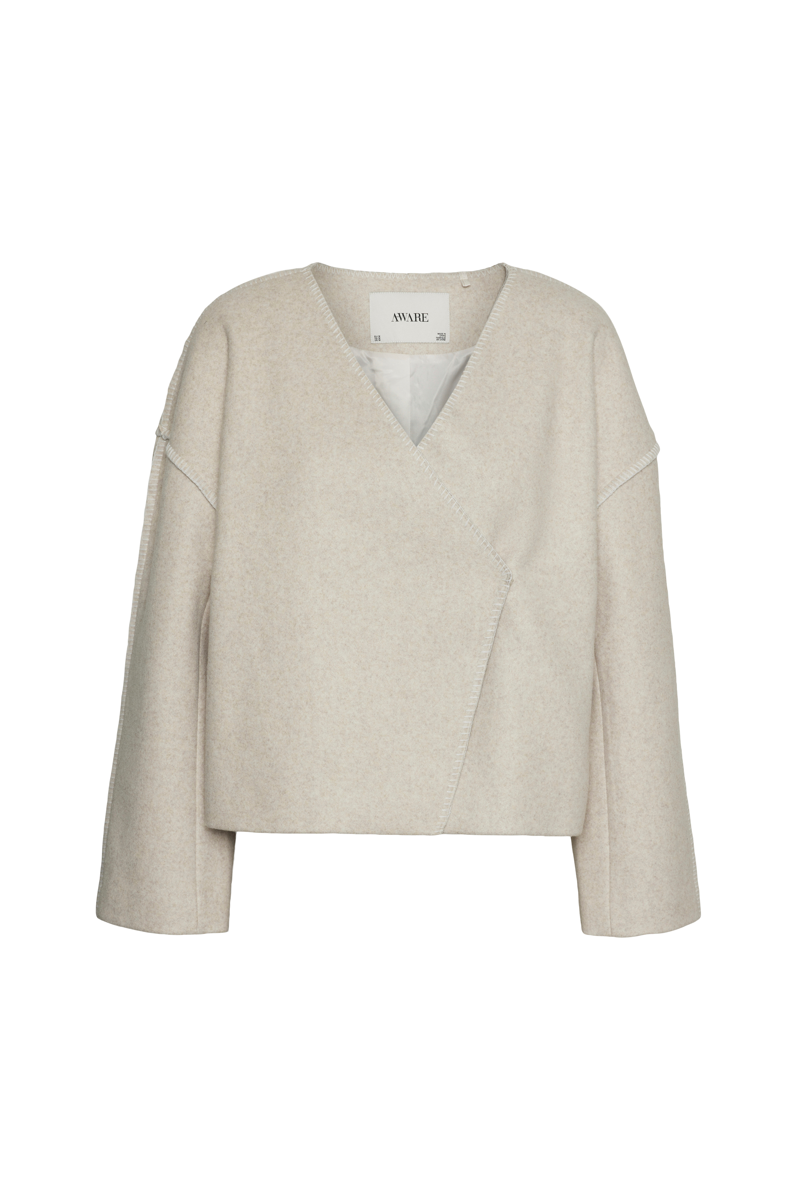 • Overpaningsmodel med skjult trykknap• Broderede kanter• Nedsænket skulder• Lige ærme• Foret• Længde: 54 cm i størrelse S