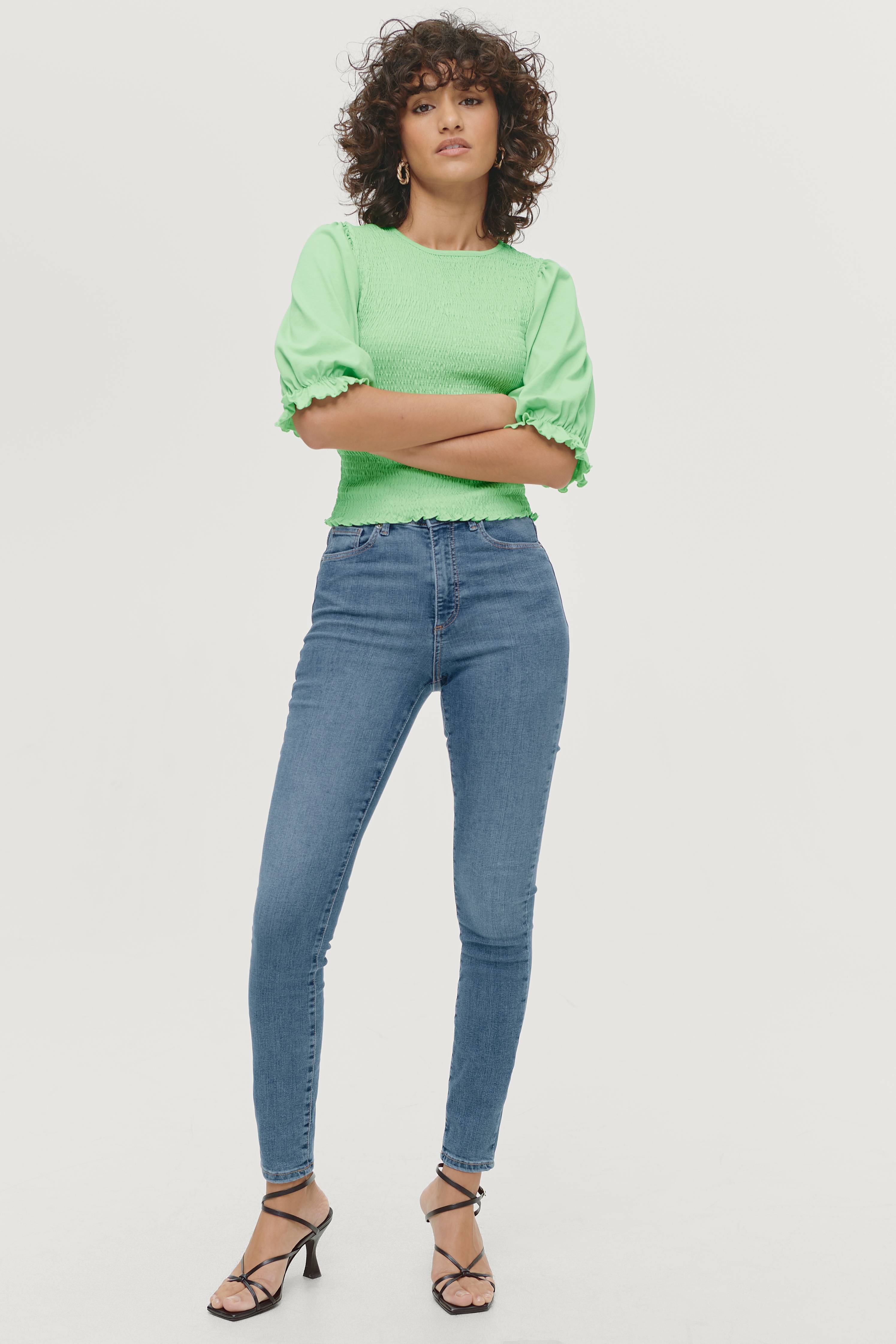 Jeans vmSophia Skinny fra Vero Moda i rigtigt smal pasform med høj talje som har lynlås i gylpen. Klassisk 5-lommemodel med smalle ben og smalle benkanter. Fodvidde ca. 22 cm.