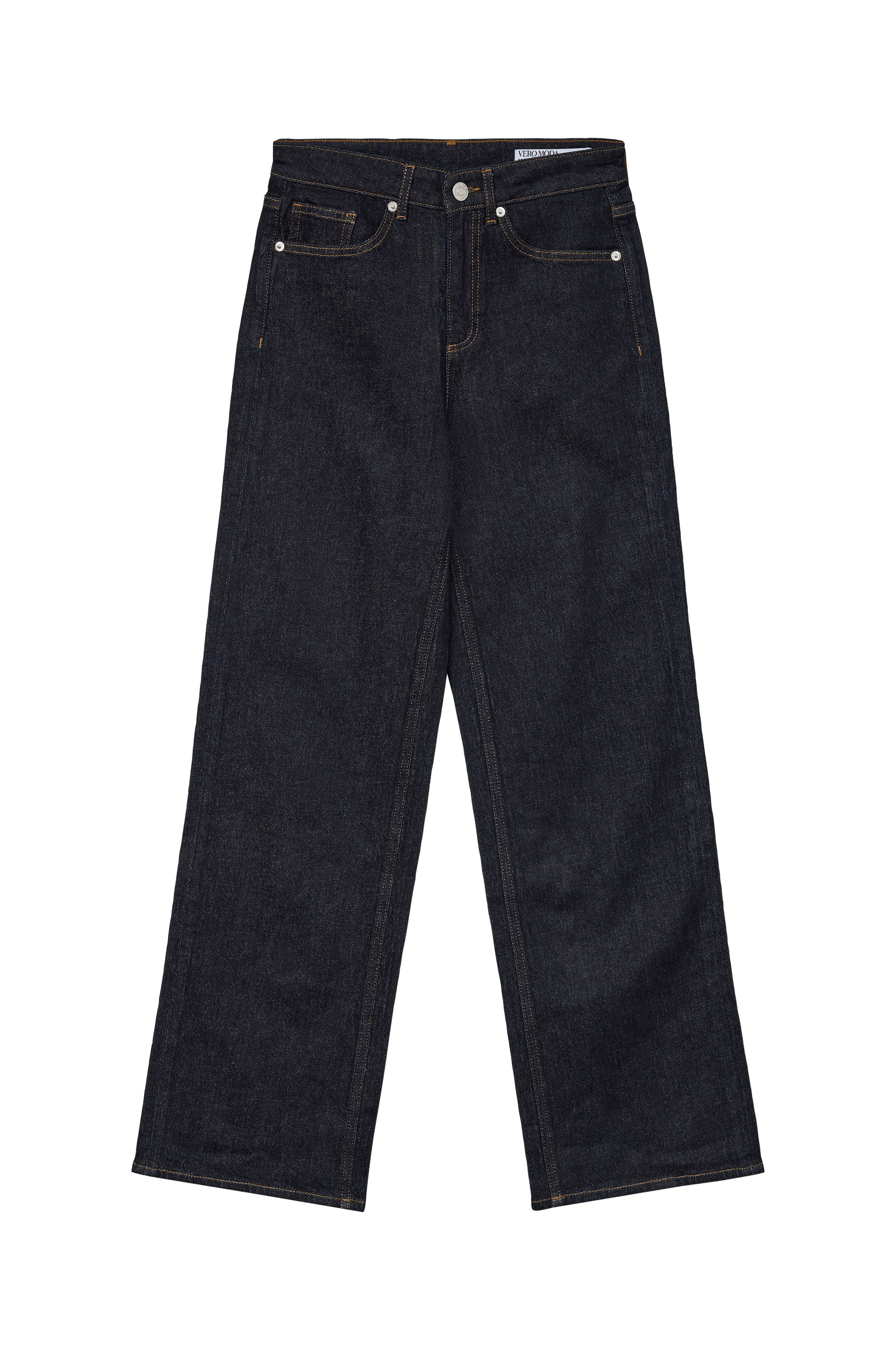 • Jeans med høj talje og brede ben• Gylp med lynlås• Femlommemodel