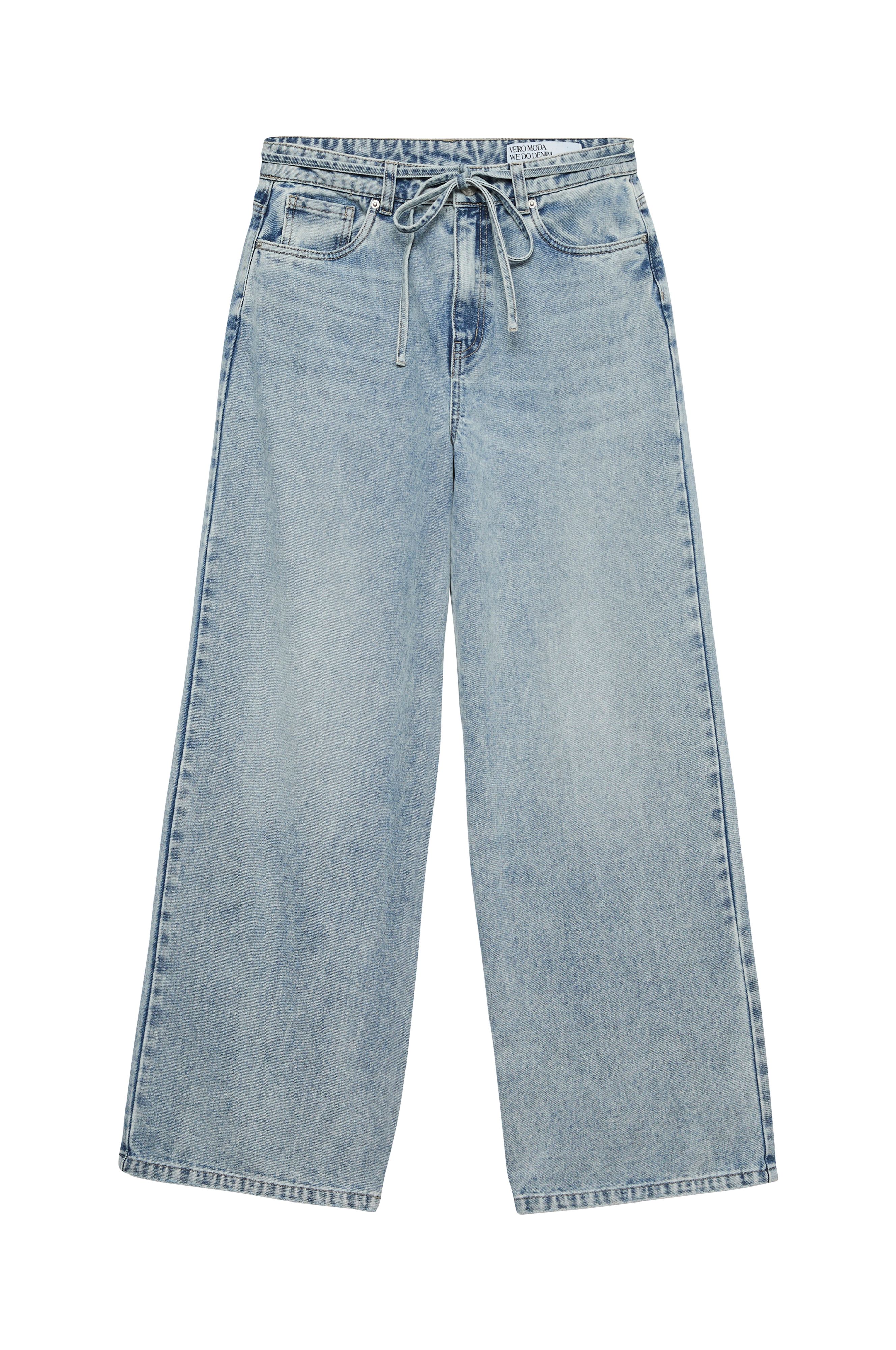 • Højtaljede jeans med brede ben• Bindebælte ved taljen• Gylp med lynlås• Femlommemodel