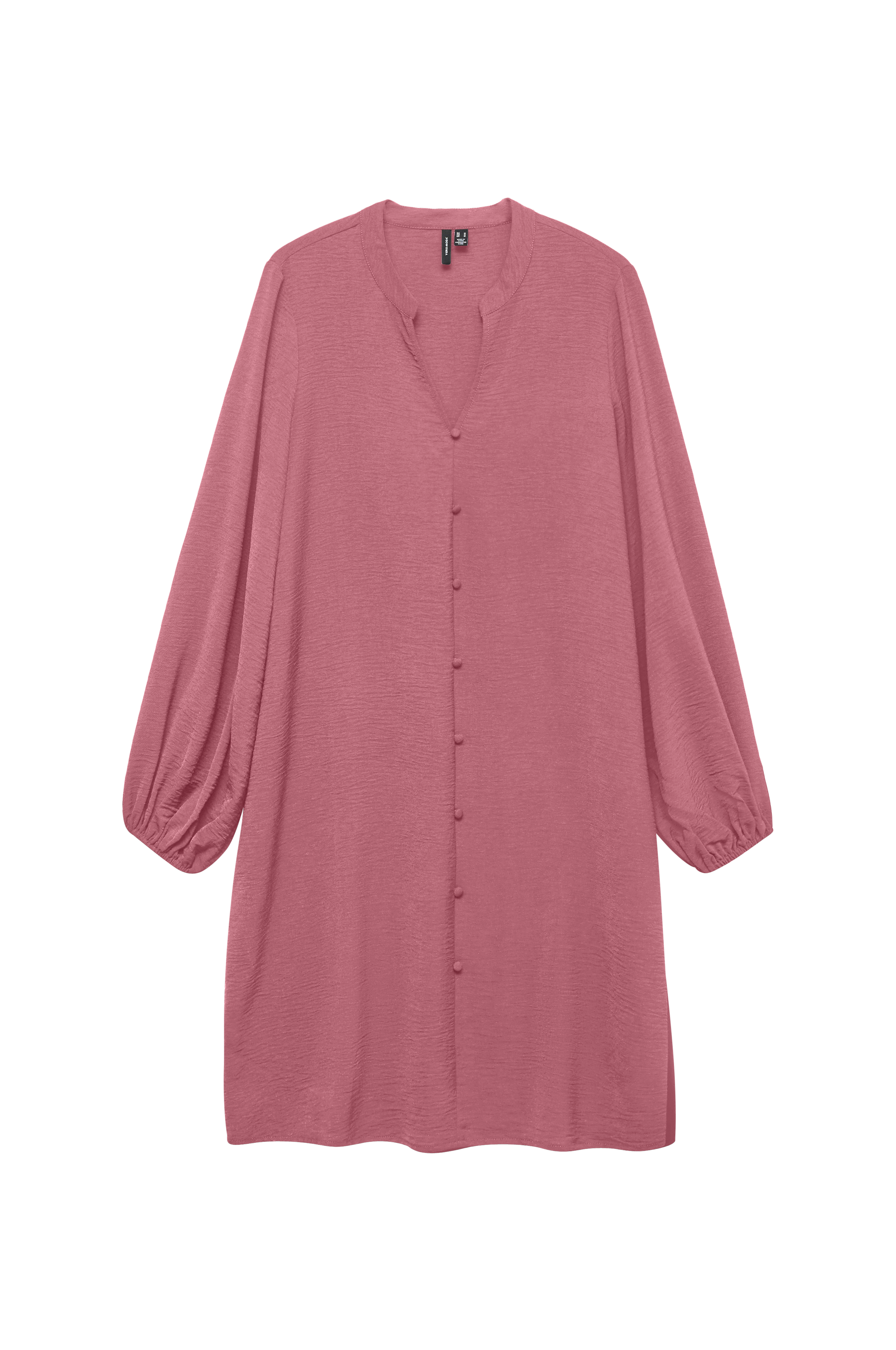 • Luftig kjole med let krøllet struktur• V-udskæring• Ballonærmer• Elastik ved manchetterne• Falsk knappelukning• Løs pasform• Længde: 95 cm i størrelse XS