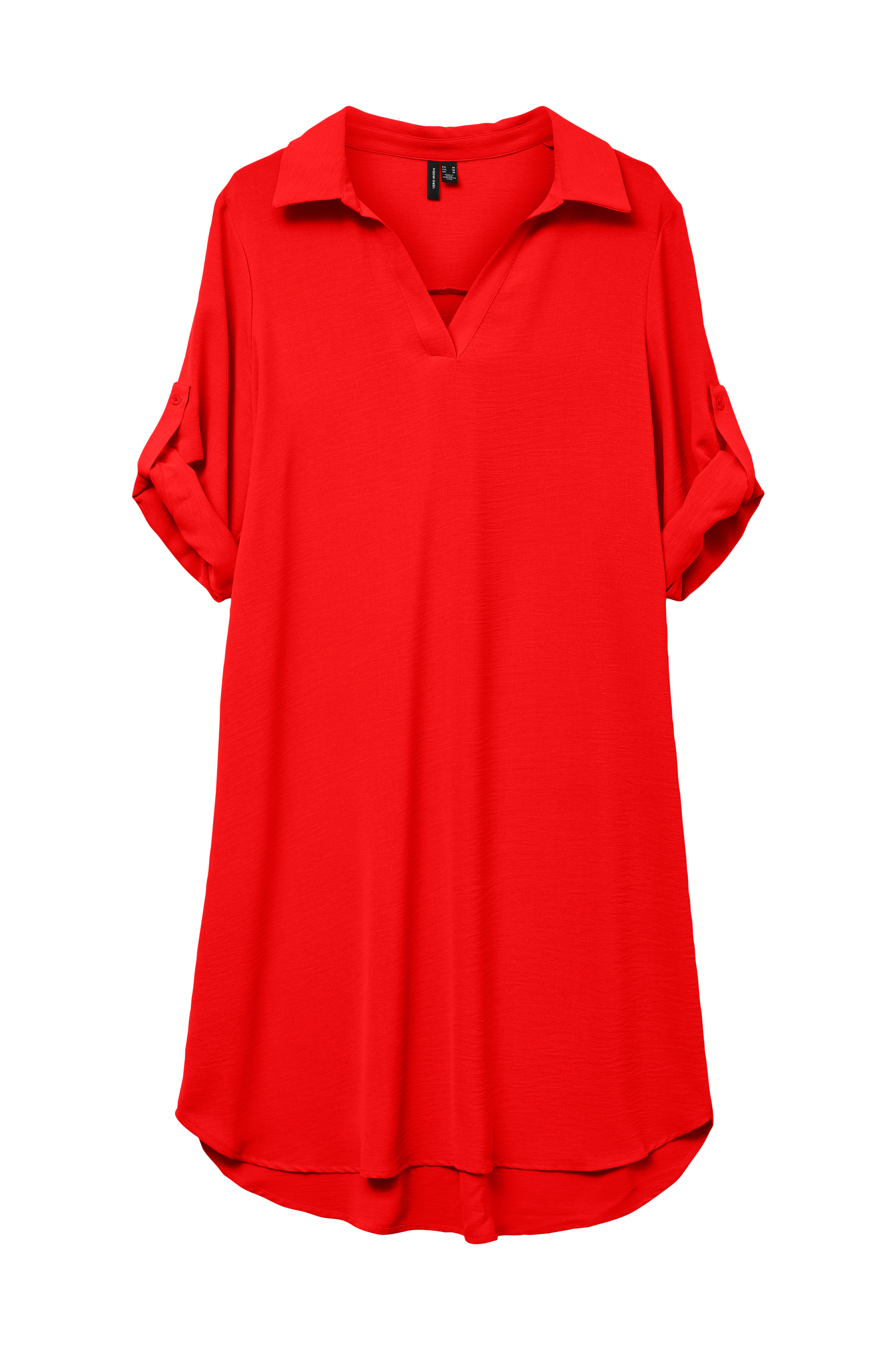 Meget fin krølfri skjortebluse/kjole. Flot rød farve og luftig til varme sommerdage. Helt tilfreds