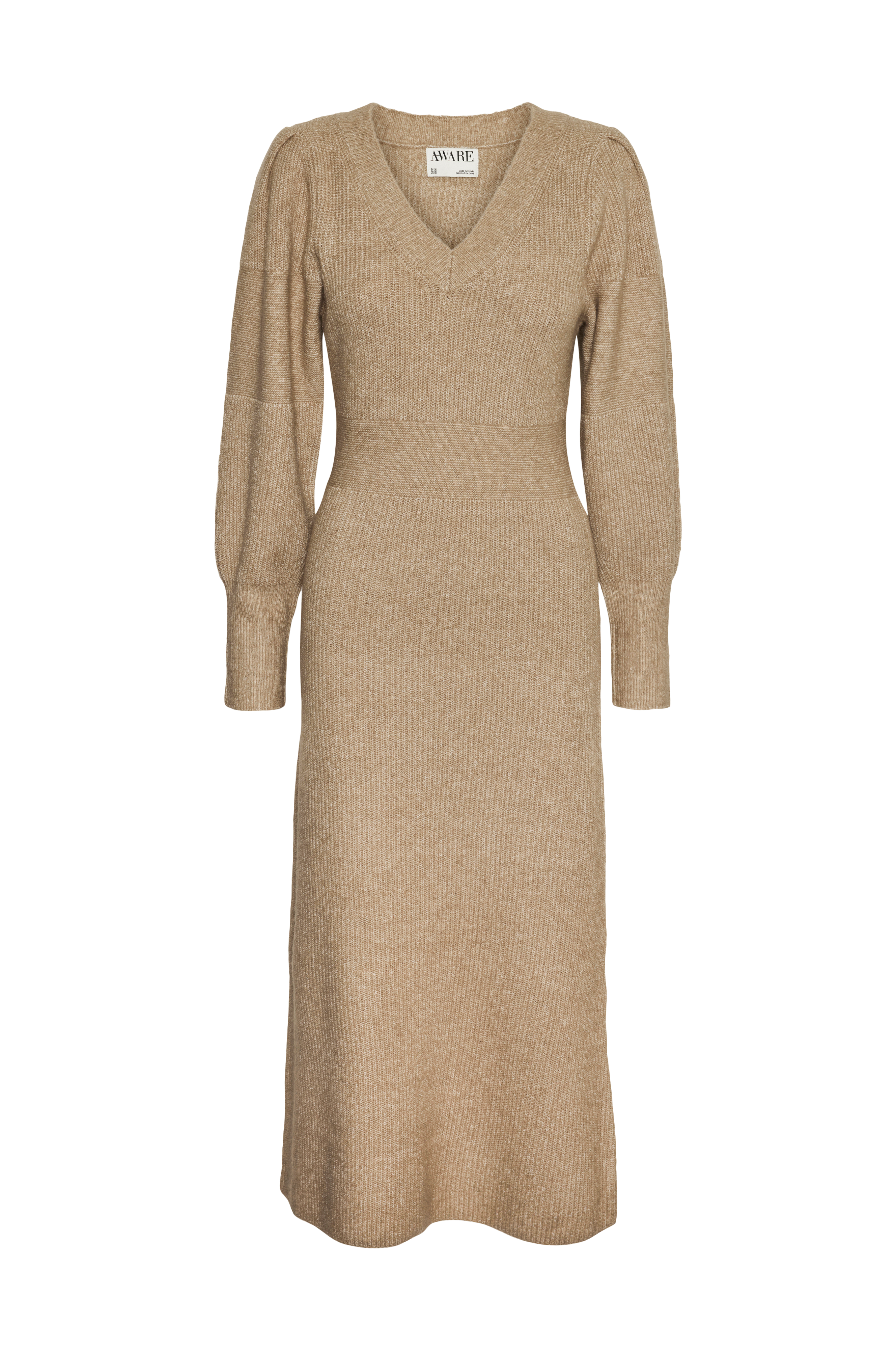 • Lang, figurformede model med defineret talje• V-formet halsudskæring• Langt ærme med læg ved skulderen og bred ribmanchet ved manchetterne• Længde: 130 cm i størrelse XS