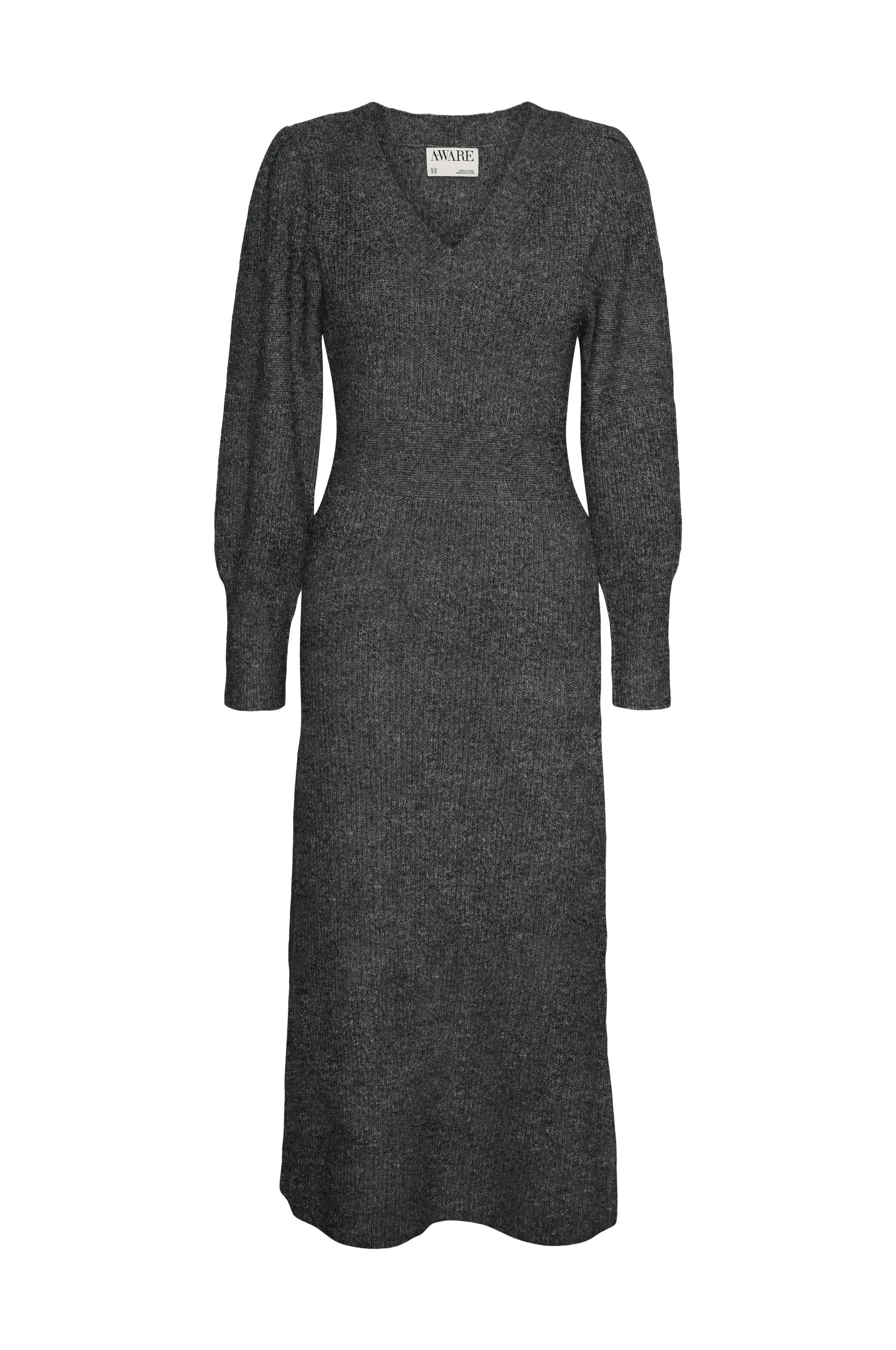 • Lang, figurformede model med defineret talje• V-formet halsudskæring• Langt ærme med læg ved skulderen og bred ribmanchet ved manchetterne• Længde: 130 cm i størrelse XS