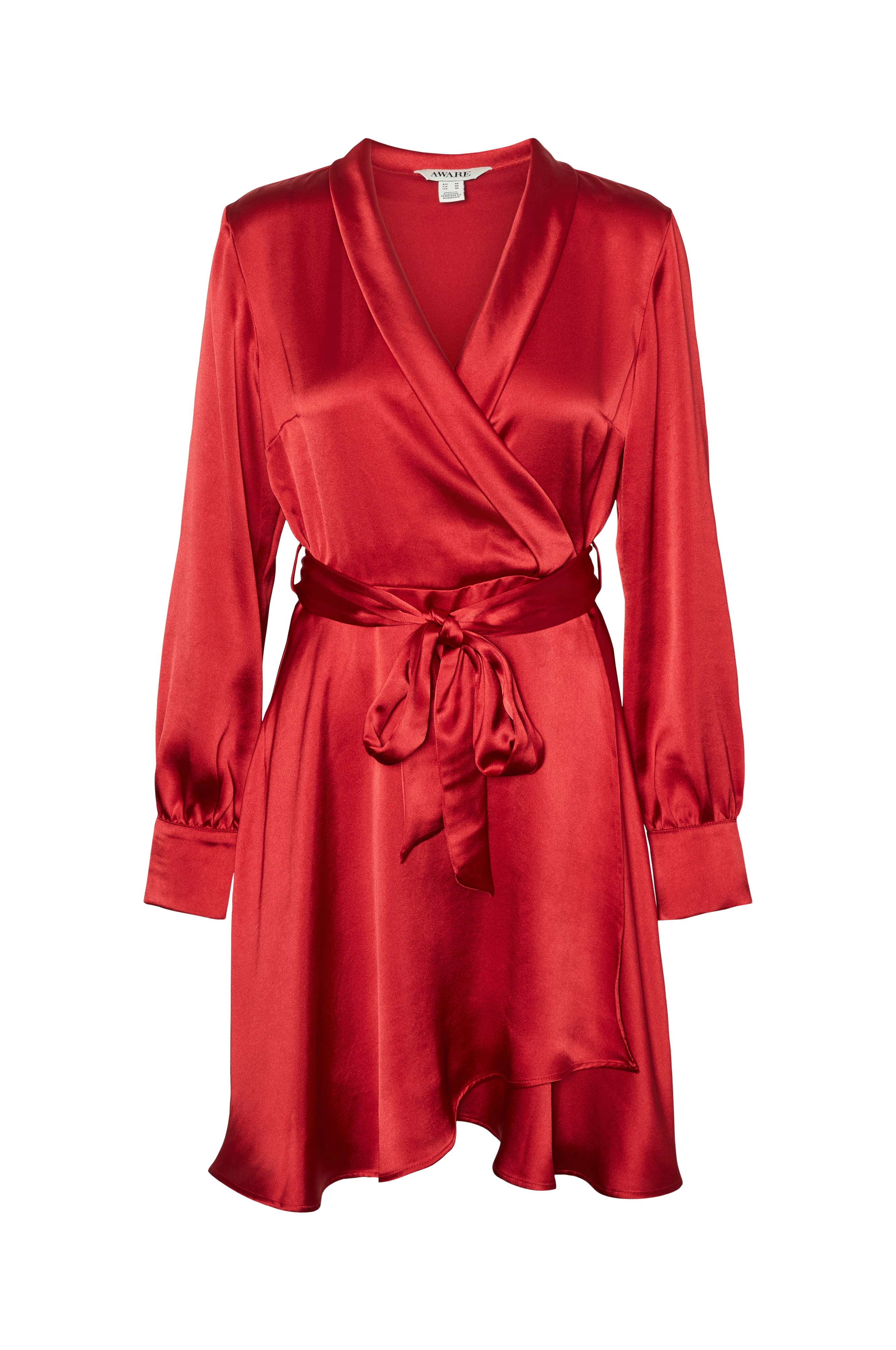 • Skinnende materiale• Slå-om design på toppen• Aftageligt bindebælte• Lange ærmer• Manchet med to knapper• Længde: 92 cm i størrelse XS