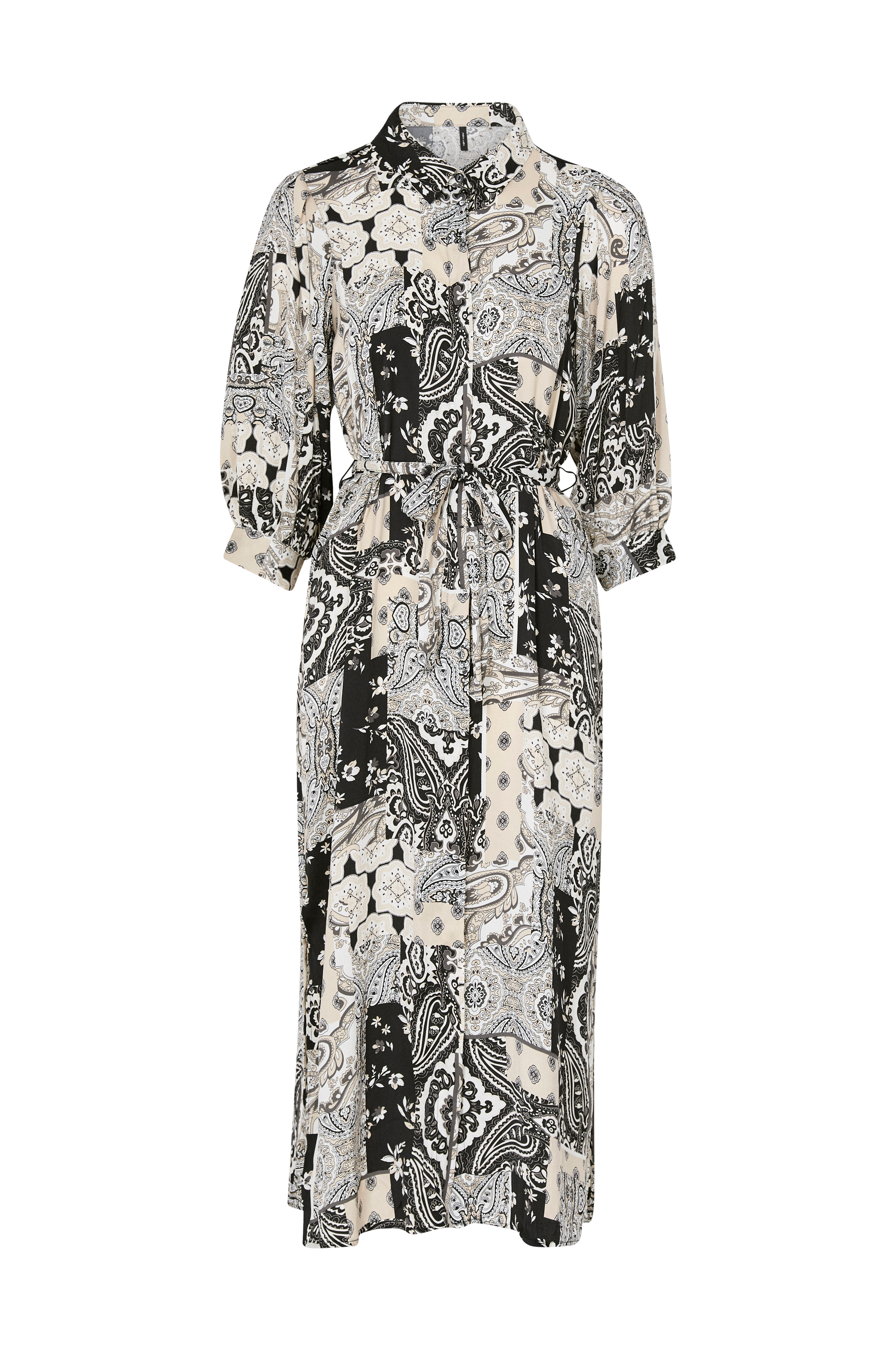 • Vævet kvalitet • 3/4 lange ballonærmer med knap ved manchetterne • V-formet halsudskæring • Gennemknappet model med skjulte knapper • Bæltespænde ved taljen • Slidser i siderne • Længde: 126 cm i størrelse S • Produktet indeholder genindvundet materiale, som genbruges for at reducere mængden af affald samtidigt med at der ikke anvendes nye ressourcer.