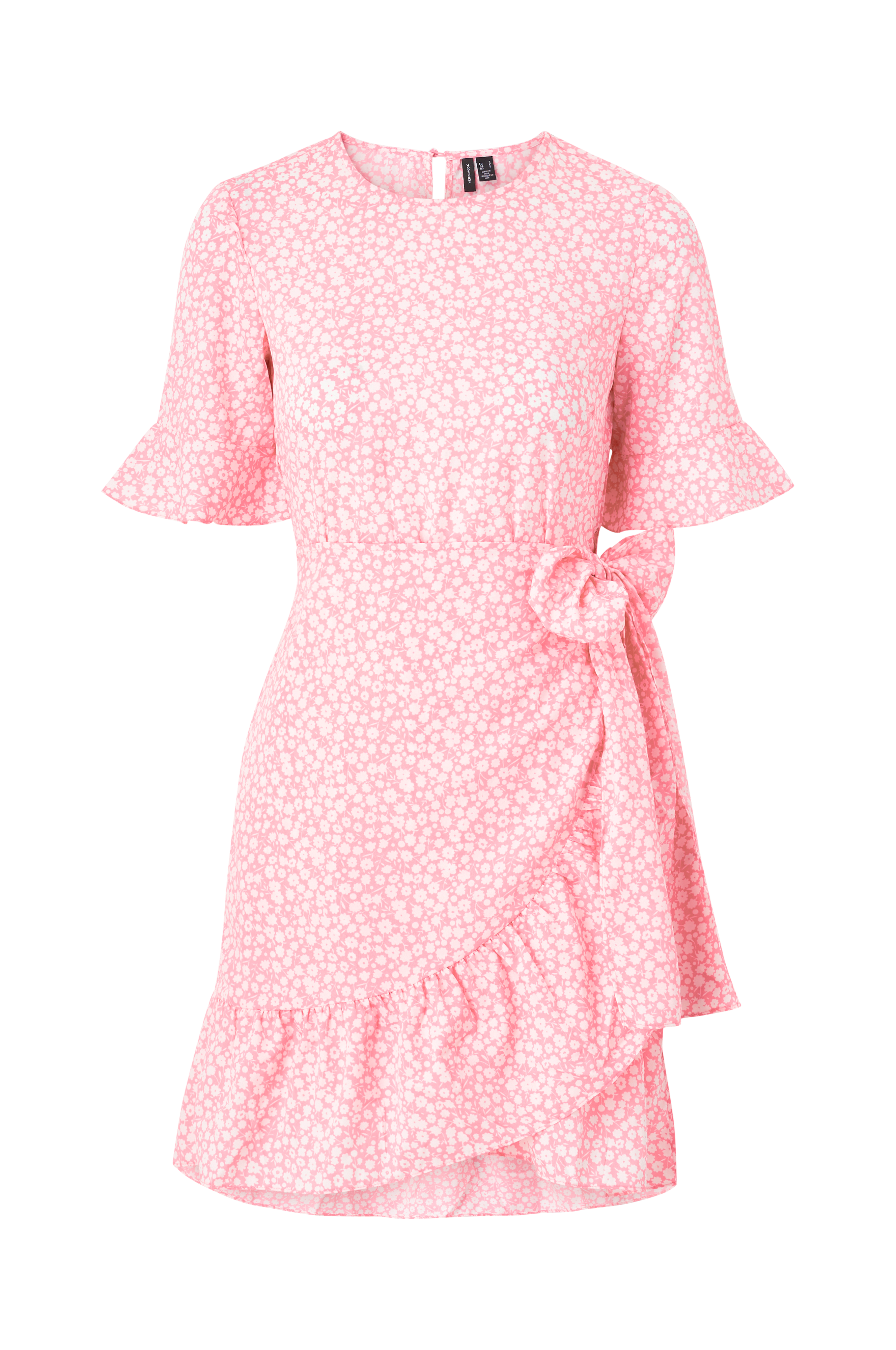 • Halvlange ærmer med volant • Rund hals med ventilation og knap bagpå • Nederdel med slå-om og bindebånd • Elastisk bånd bagpå ved taljen • Længde: 88 cm i størrelse S • Produktet indeholder genindvundet materiale, som genbruges for at reducere mængden af affald samtidigt med at der ikke anvendes nye ressourcer.