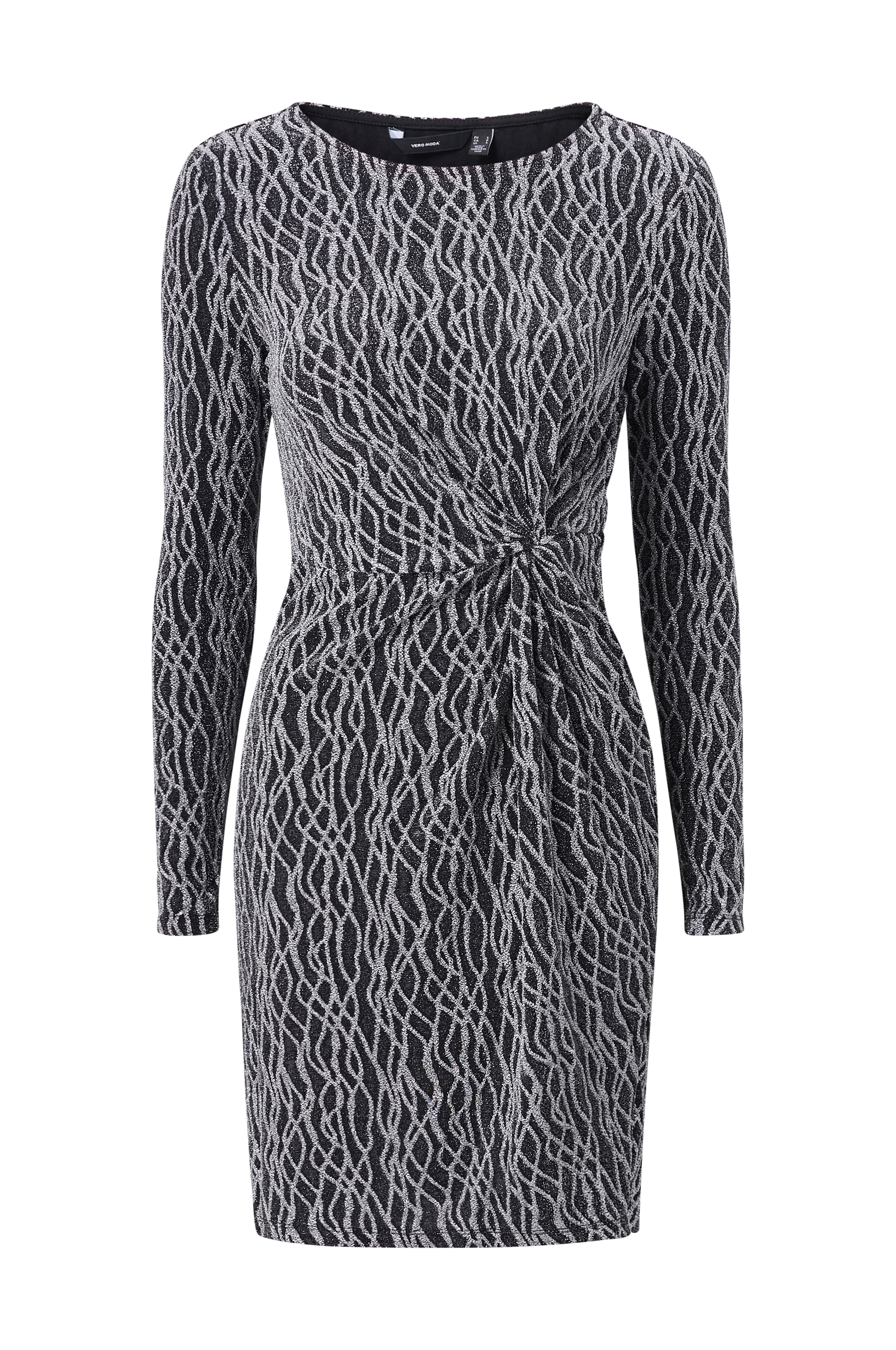 • Figursyet kjole i glitrende jersey• Knudedrapering ved taljen• Lange ærmer• Længde: 89 cm i størrelse S