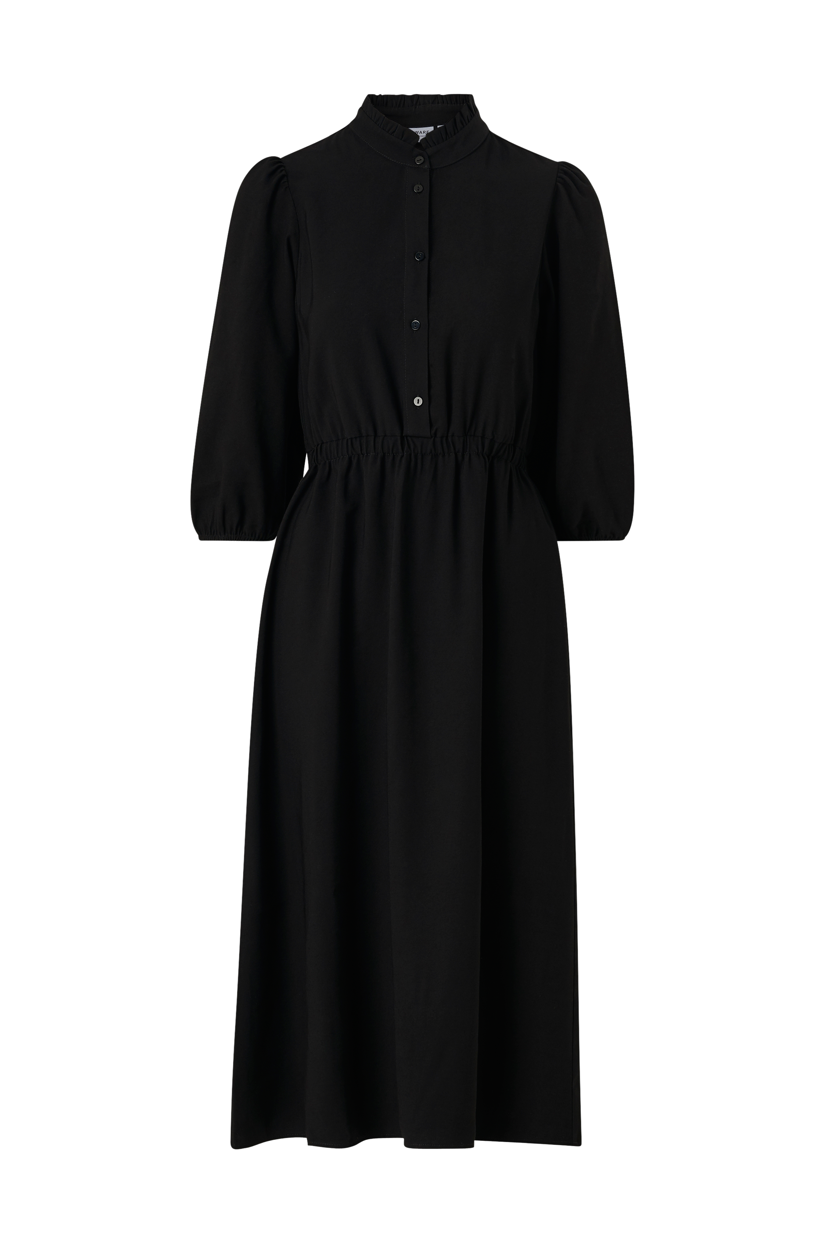 Kjole vmKind 3/4 Calf Dress fra Vero Moda. Model med lille flæsekant i halsen og stolpelukning ned til taljen samt vidt 3/4-langt ærme med indsat elastik i ærmekanten. Afskæring med indsat elastik i taljen. Længde ca. 117 cm i str. S.