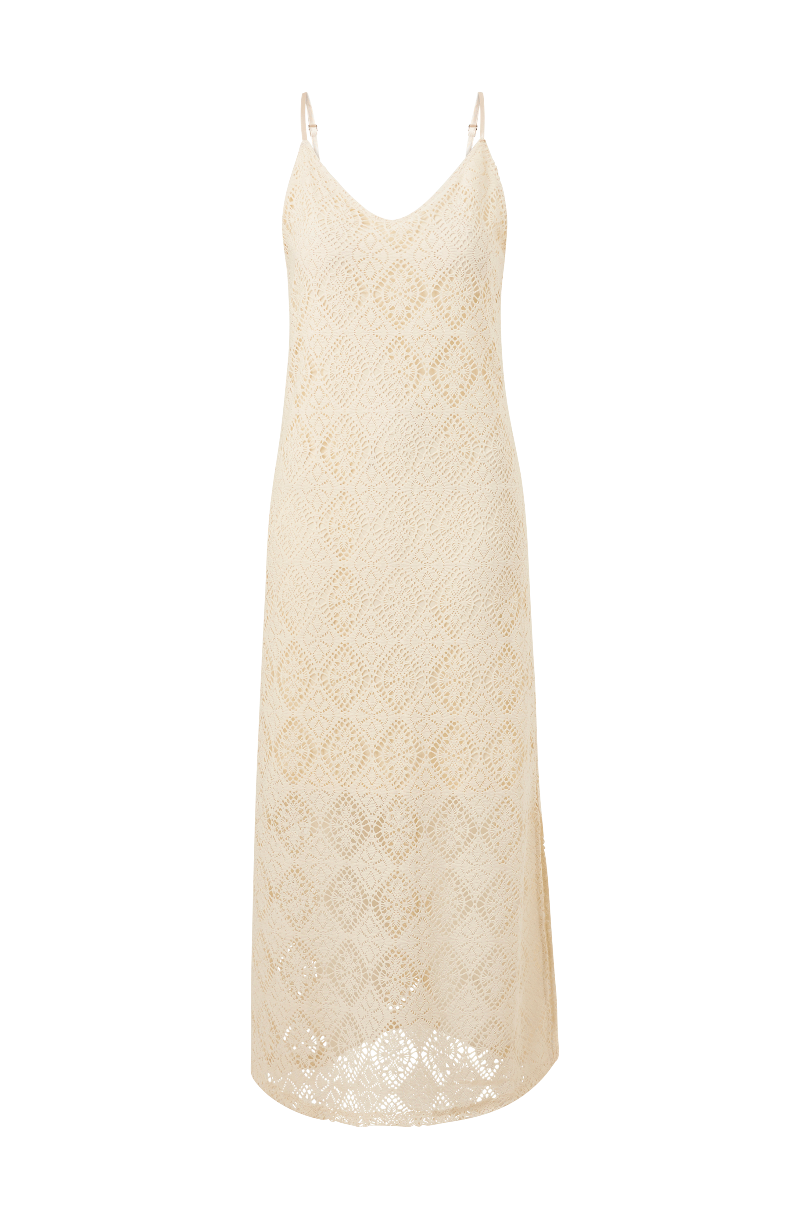 • Kjole i blonde• Lige, smal pasform• V-udskæring• Tynde, justérbare skulderstropper• Slids i den ene side• Kort for• Længde: 128 cm i størrelse S