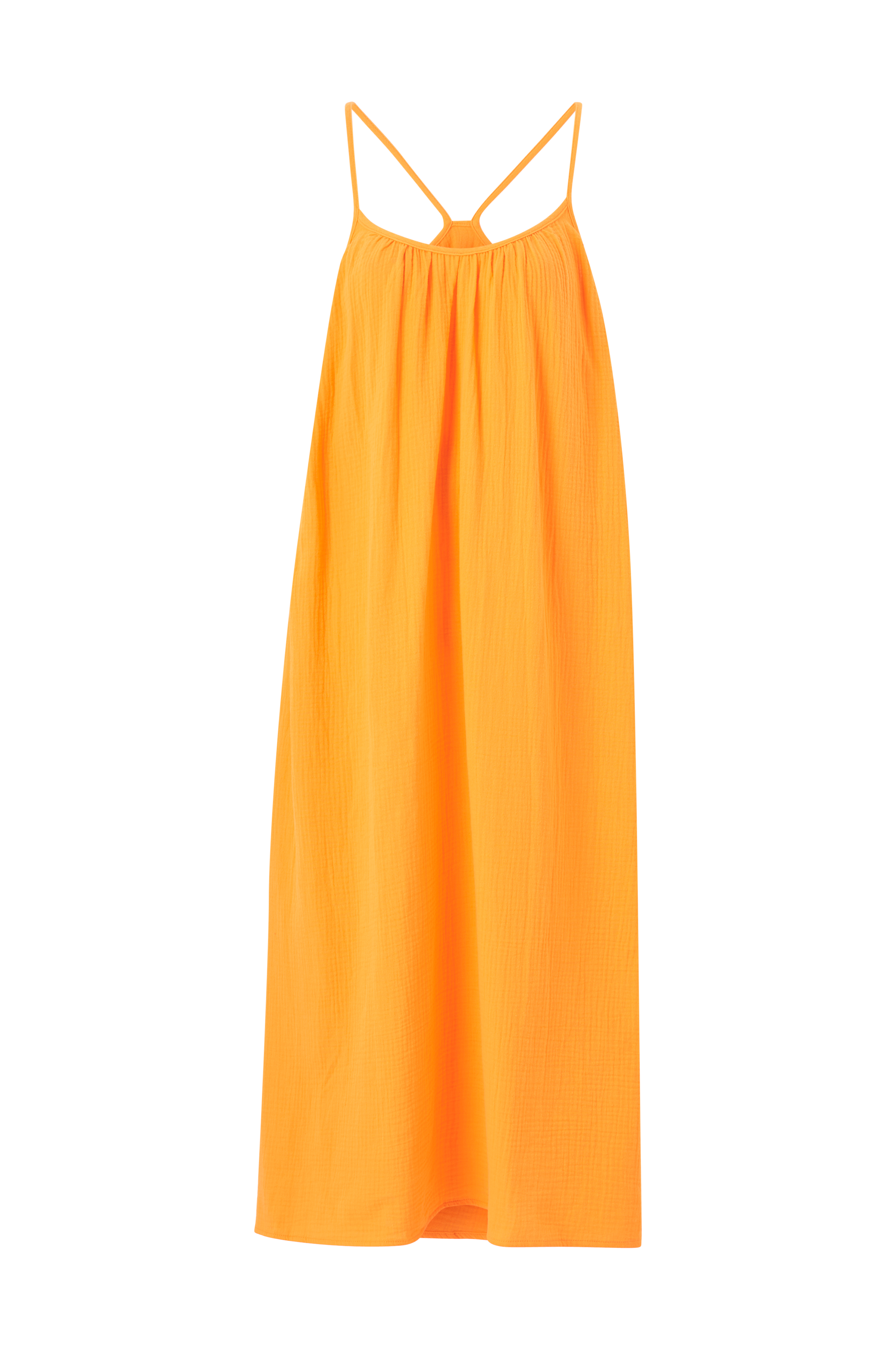 • Lang, ærmeløs kjole• Bredt A-linje design• Tynde skulderstropper• Længde: 128 cm i størrelse S