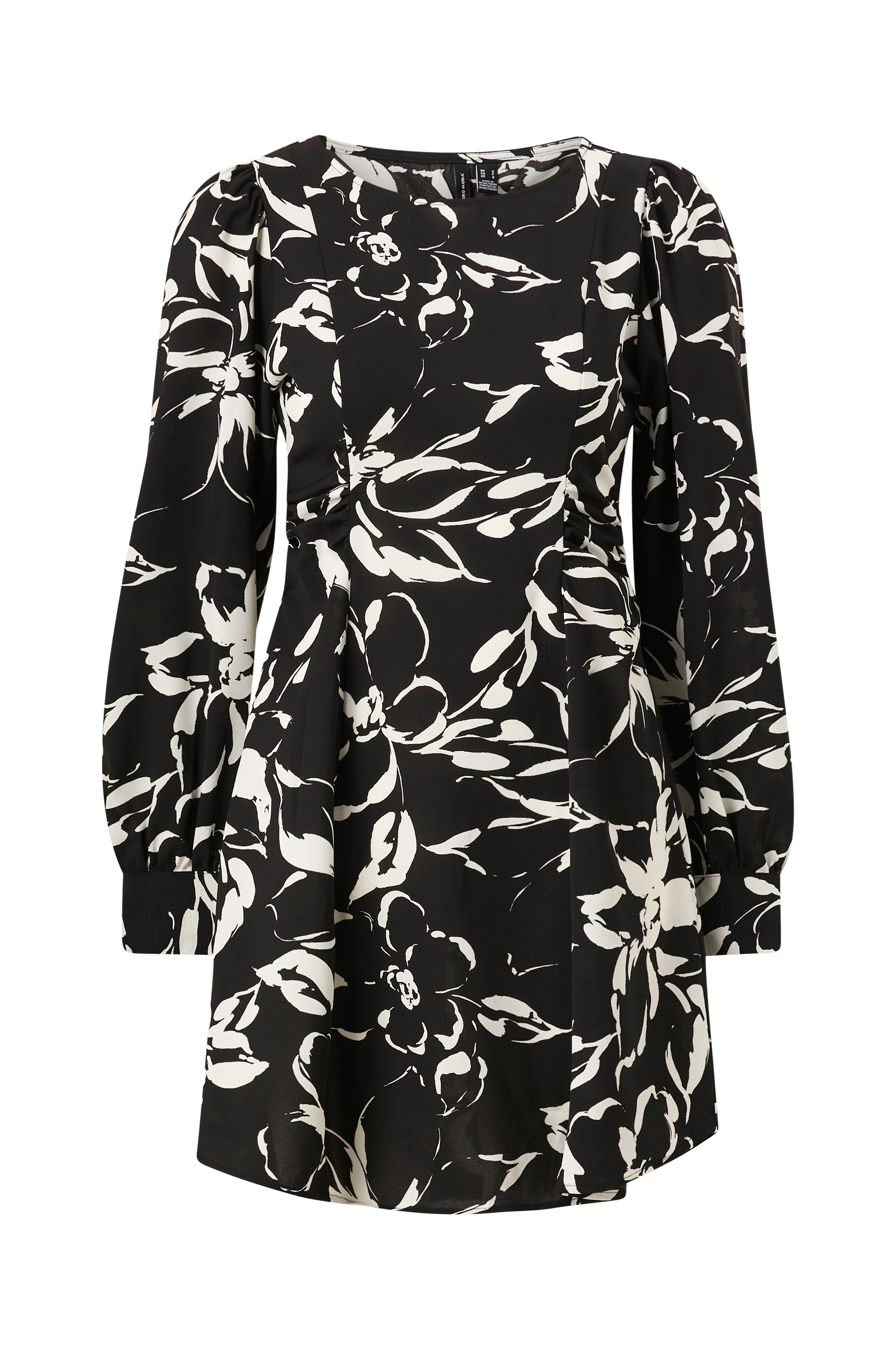 • Figurformede kjole • Samling i siderne • Ballonærmer med manchet • Elastisk åbning i ryggen • Skjult lynlås i siden • Længde: 85 cm i størrelse S • Produktet indeholder genindvundet materiale, som genbruges for at reducere mængden af affald samtidigt med at der ikke anvendes nye ressourcer.