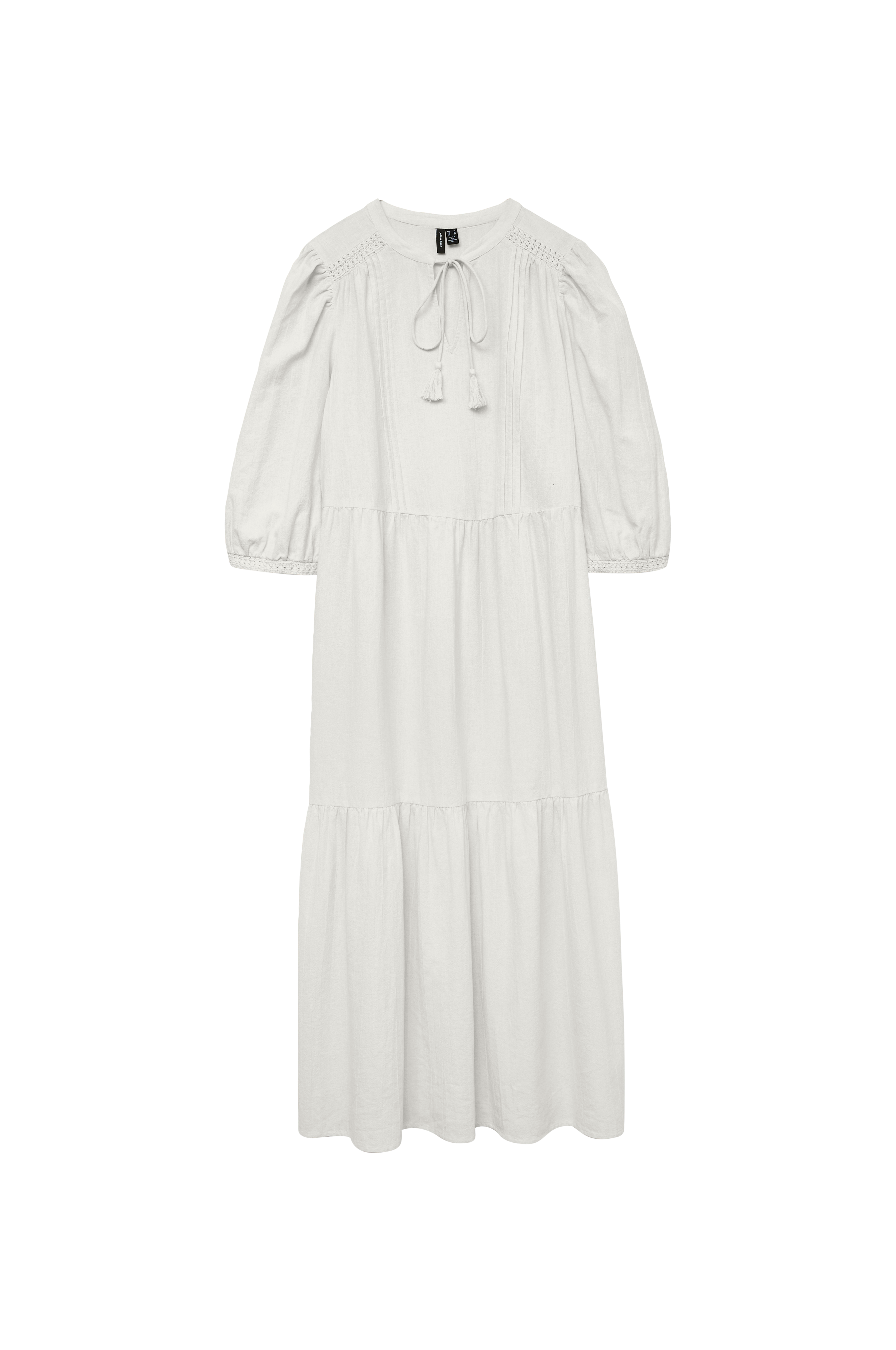 • Model med svaj• Syede biselæg på brystet• Rund hals med bindebånd• Blondeindlæg på skuldrene• Halvlangt ballonærme• Rynket talje• Bred volant nederst• Længde: 119 cm i størrelse XS