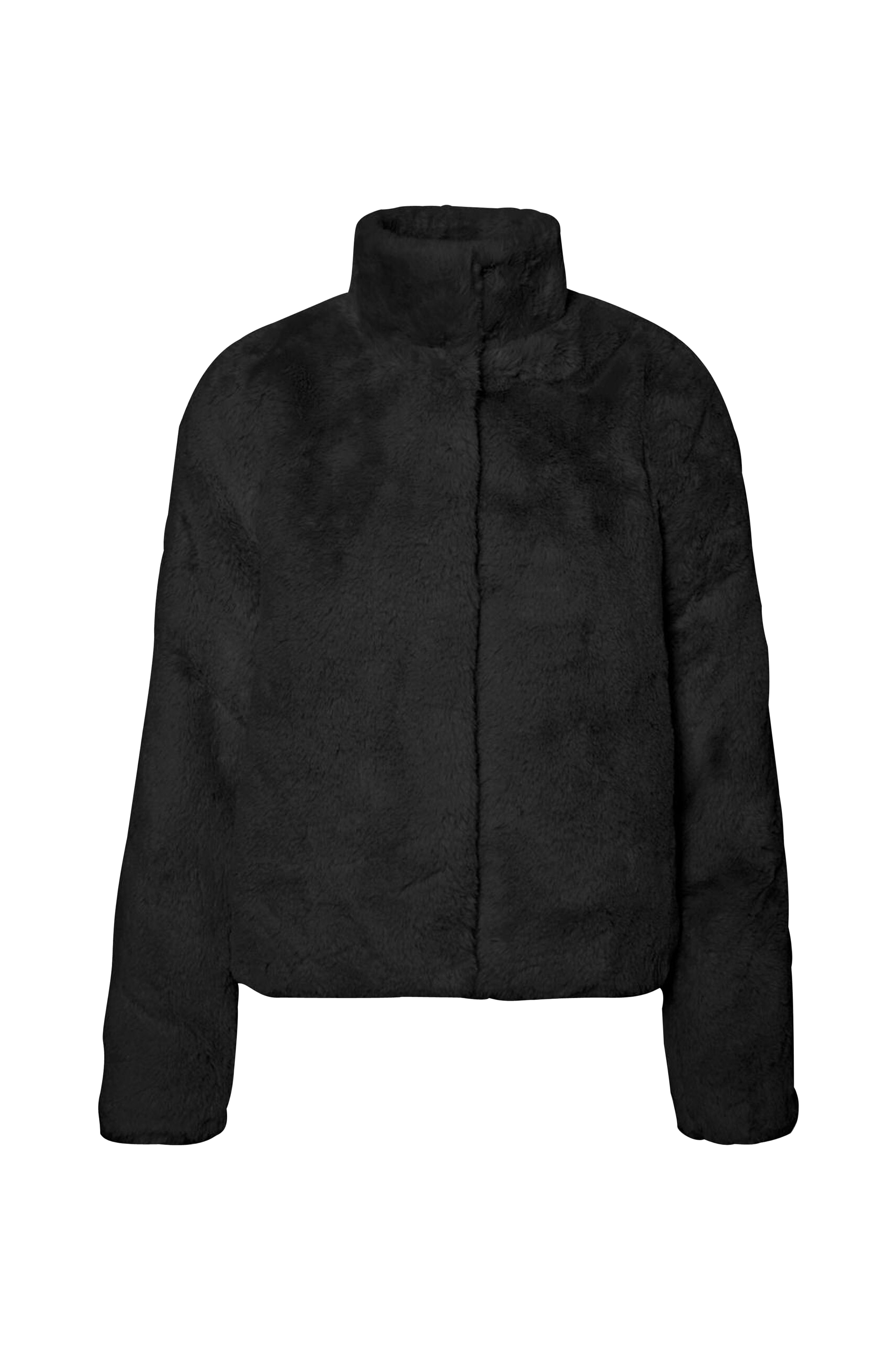 Kunstpels vmThea 3/4 Faux Fur Jacket fra Vero Moda. Lige model med høj krave og skjulte trykknapper hele vejen foran samt indsatte lommer i sidesømmene. Længde ca. 75 cm i str. S.