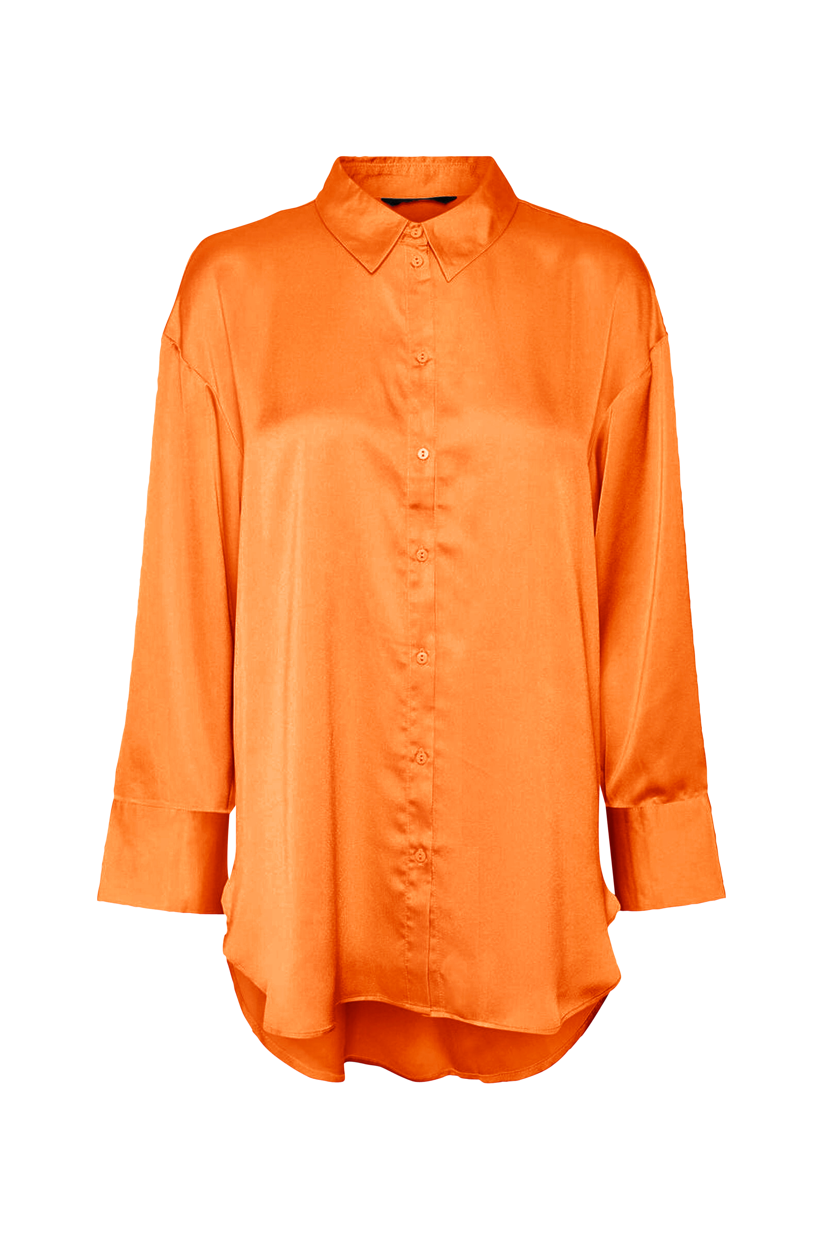 • Lige oversize model i satin• Lille krave• Gennemknapning foran• Langt ærme med bred manchet• Afrundet søm