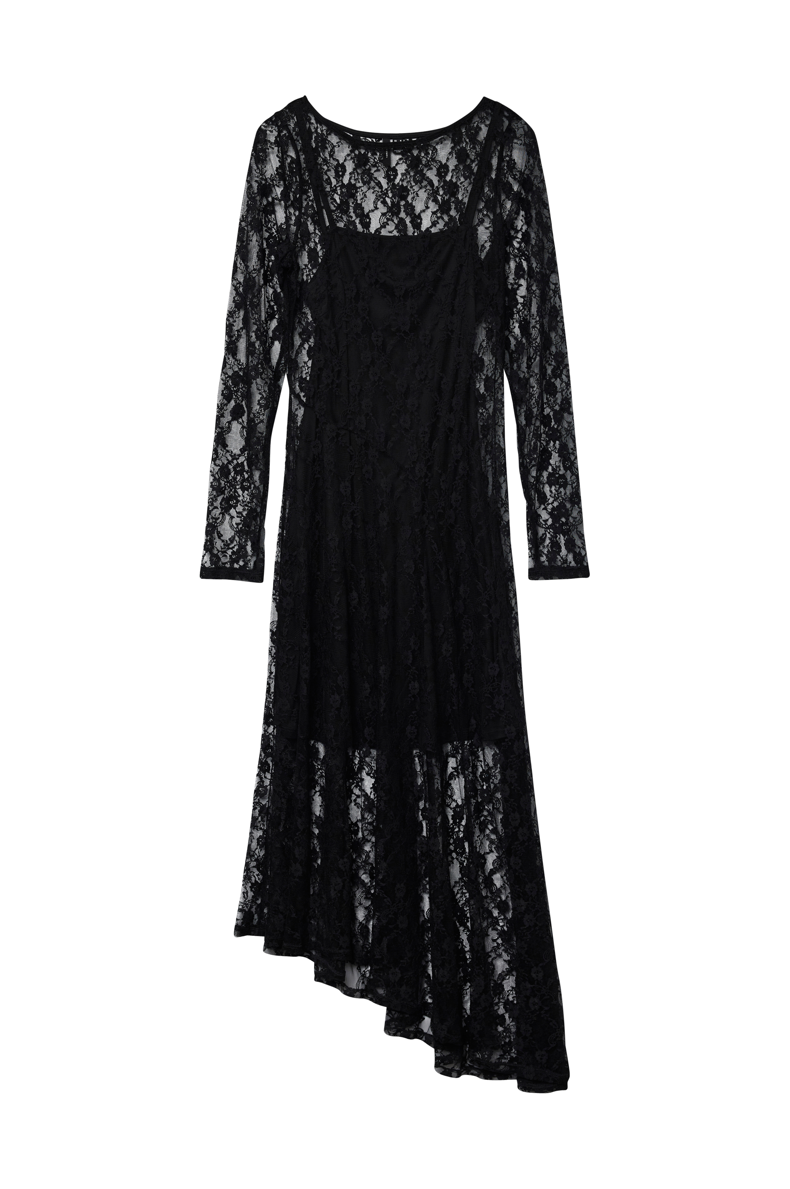 • Transparent model i blonde med asymmetrisk søm• Bred halsudskæring• Langt ærme• Udtagelig underkjole med v-udskæring og tynde, justérbare skulderstropper• Længde: 116/133 cm i størrelse XS