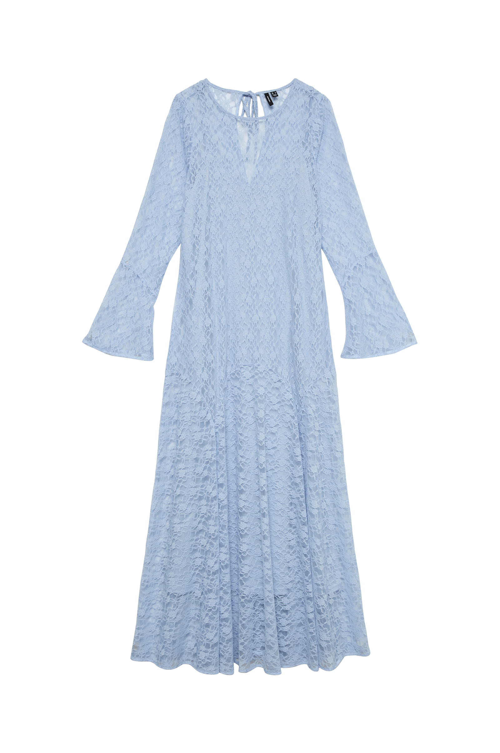 • Lang kjole i elastisk blonde• Åbning med bindebånd i ryggen• Lange trompetærmer• Nedre del med svaj• Underkjole i jersey• Længde: 138 cm i størrelse S
