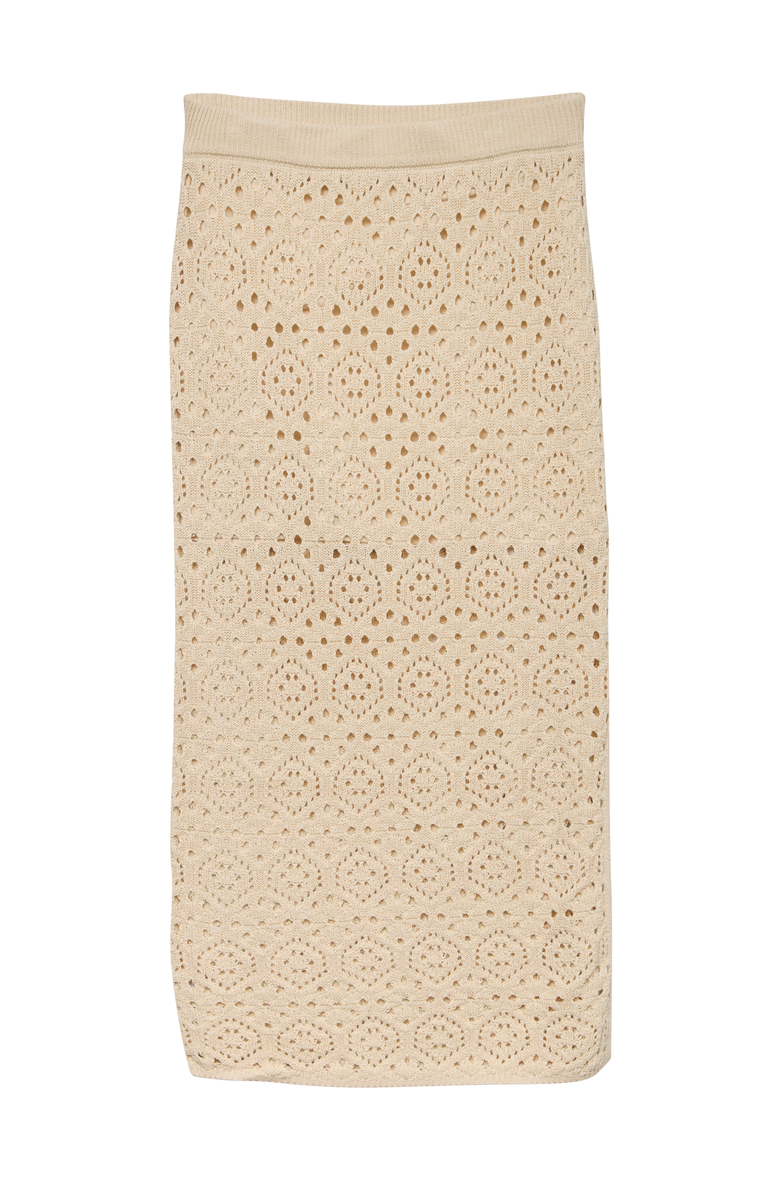 • Strikket maxi nederdel med hulmønster• Trikotfor• Ribbet, elastisk talje• Slids i den ene side• Længde: 97 cm i størrelse S