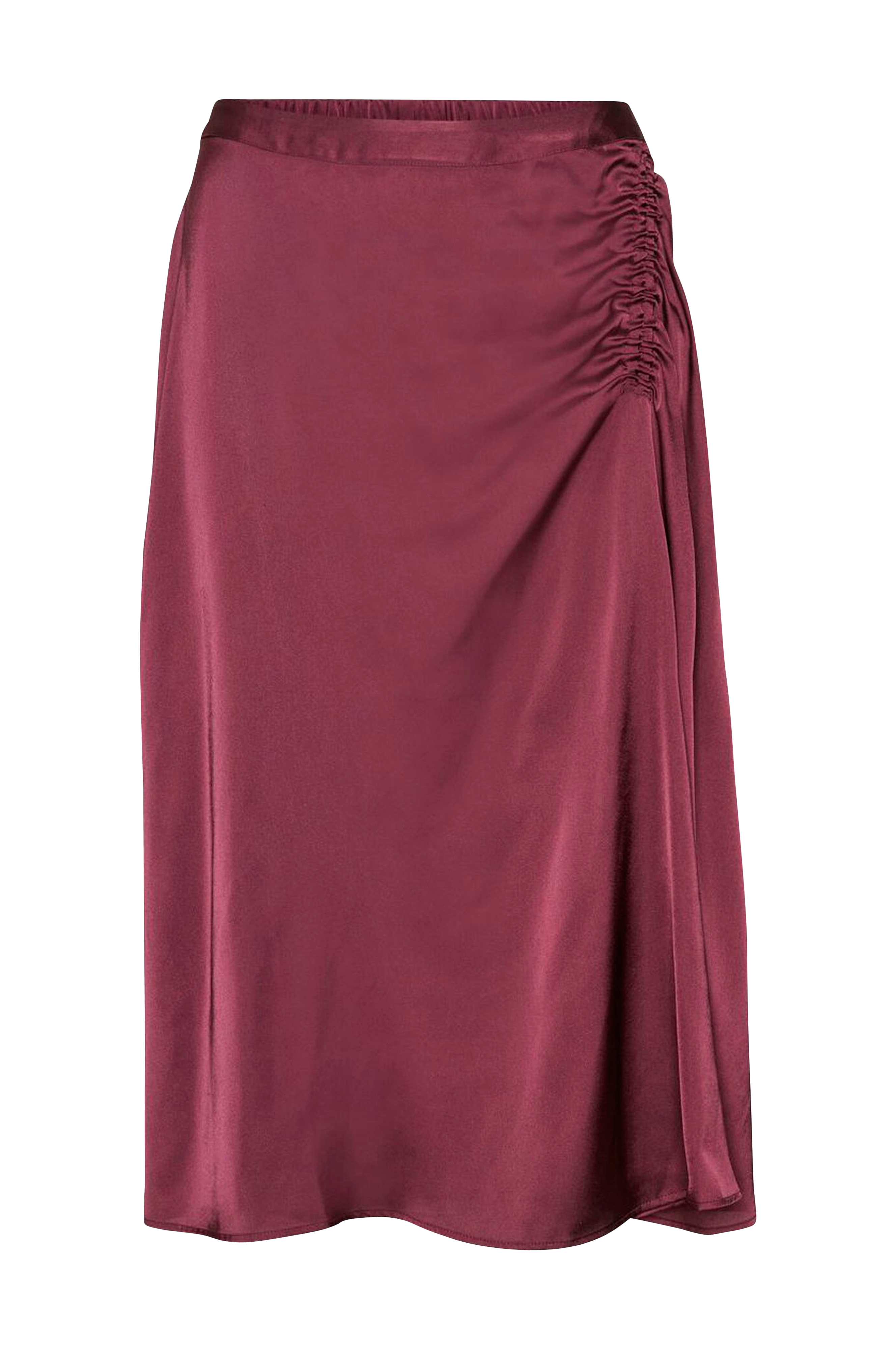• Elastik bagpå ved taljen • Rynket detalje i siden • Tynd, skinnende kvalitet • Længde: 70 cm i størrelse S • Produktet indeholder genindvundet materiale, som genbruges for at reducere mængden af affald samtidigt med at der ikke anvendes nye ressourcer.