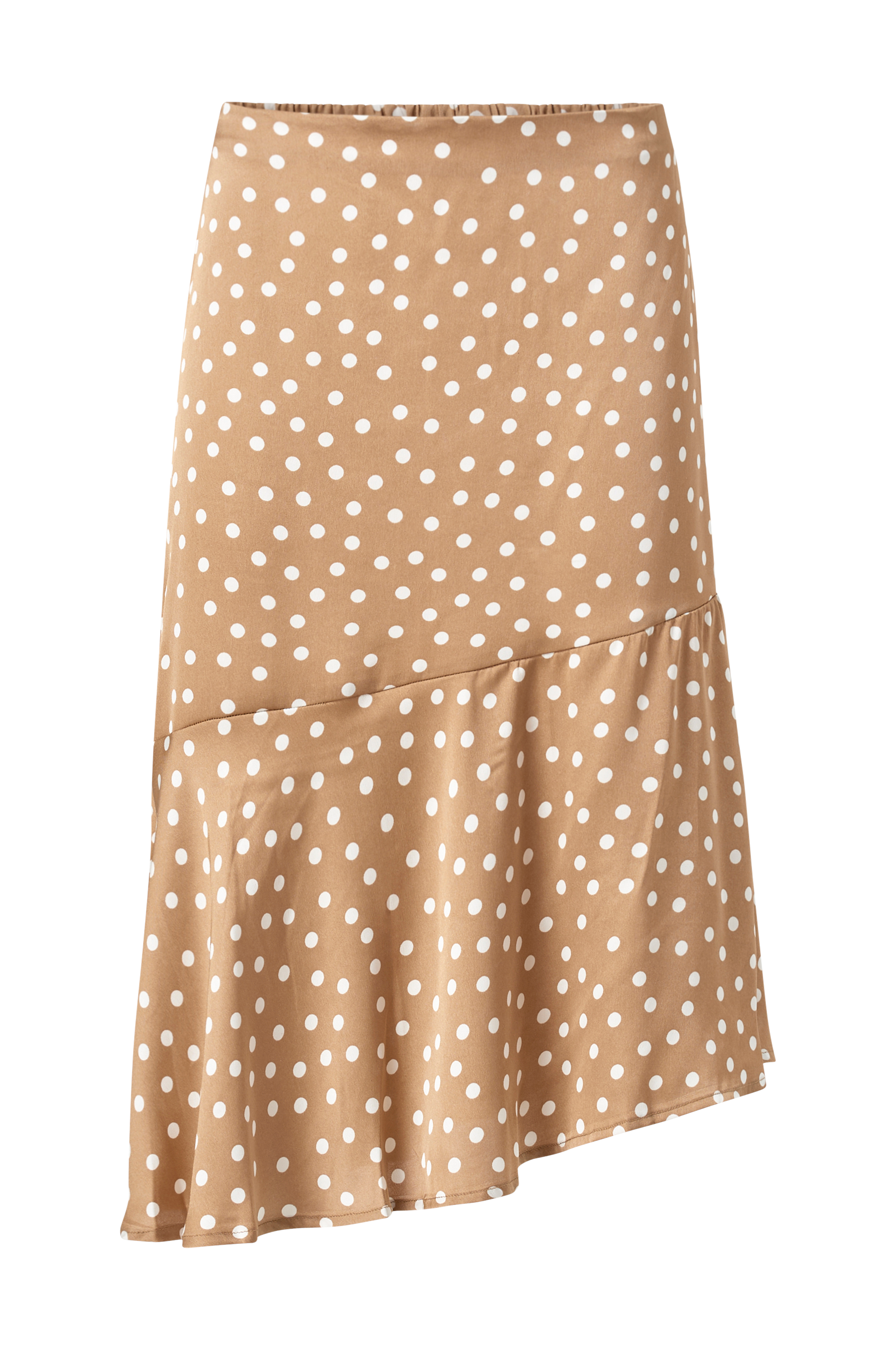 • Model med svaj med asymmetrisk søm • Elastisk bånd bagpå ved taljen • Skinnende kvalitet • Længde: 64 cm i størrelse S • Produktet indeholder genindvundet materiale, som genbruges for at reducere mængden af affald samtidigt med at der ikke anvendes nye ressourcer.