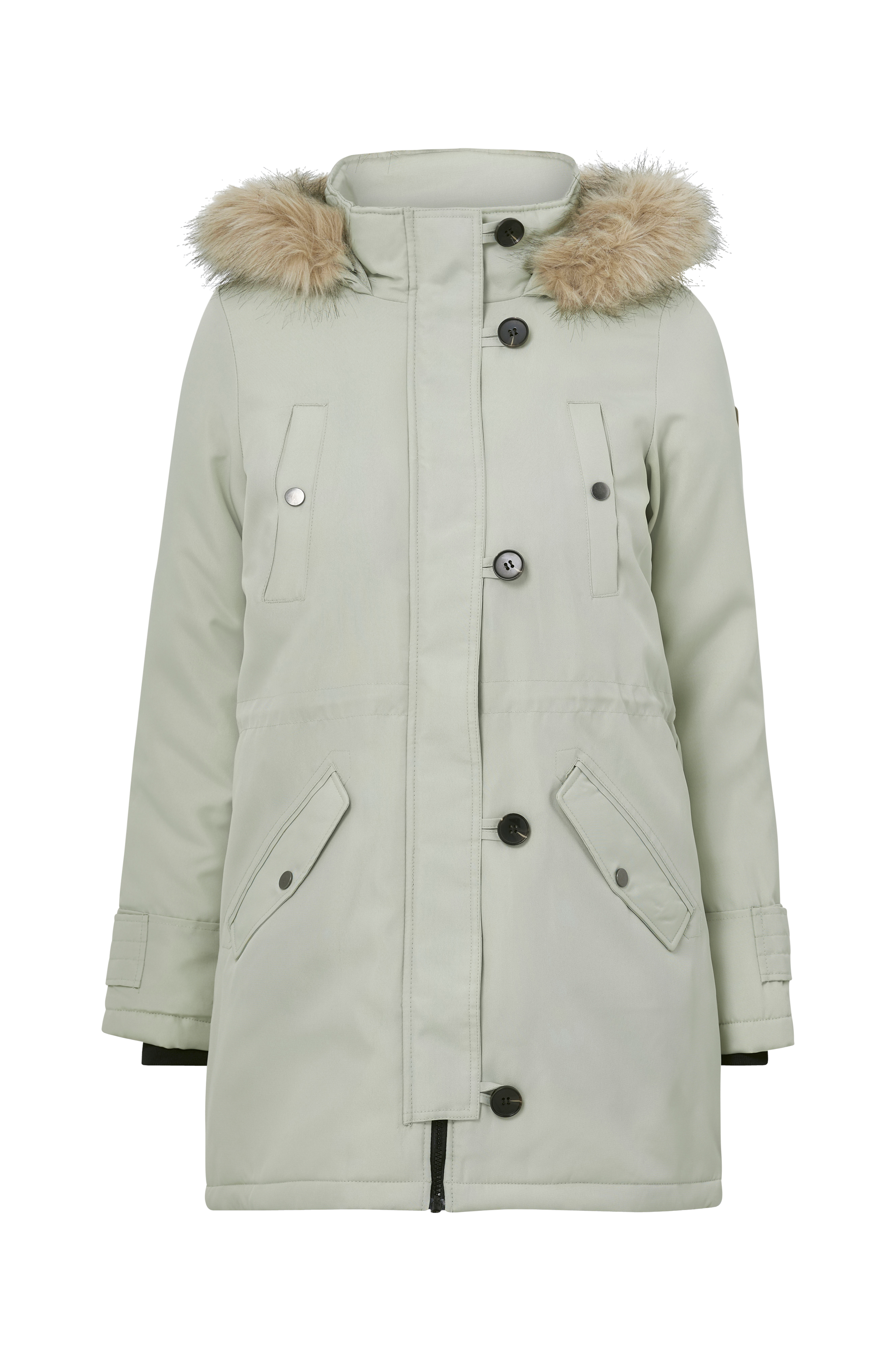 Parkacoat vmExcursion Expedition AW193/4 Parka fra Vero Moda i vatteret model med indvendig løbegang i taljen og fire lommer foran. Lynlås og overfald med knapper foran. Krave med aftagelig kant af kunstpels. Skjult ribkant i ærmet. Længde ca. 81 cm i str. S.