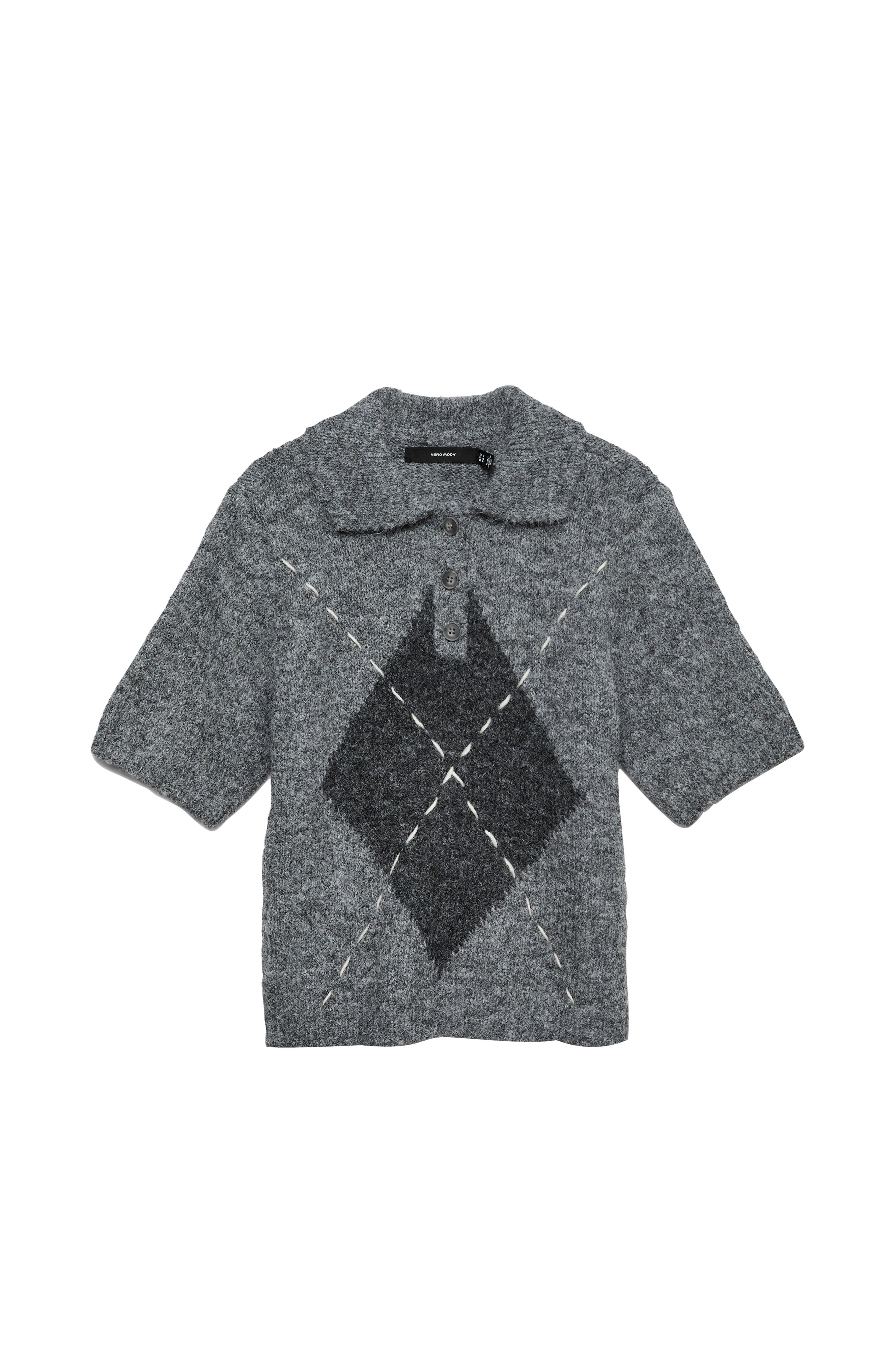 • Strikket, kortærmet Pullover i uldmiks• Stor krave• Kort knaplukning foran• Dekorative syninger foran