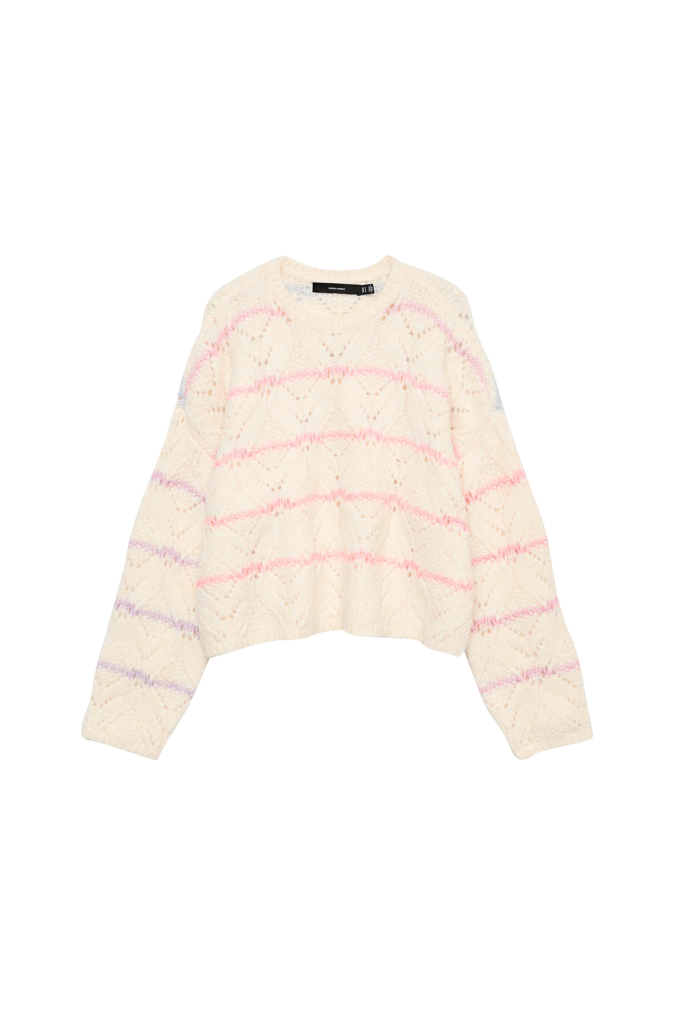 • Løststrikket, hulmønstret Pullover• Rund, ribstrikket halsudskæring• Smal ribstrik ved manchetterne og ved nederste kant