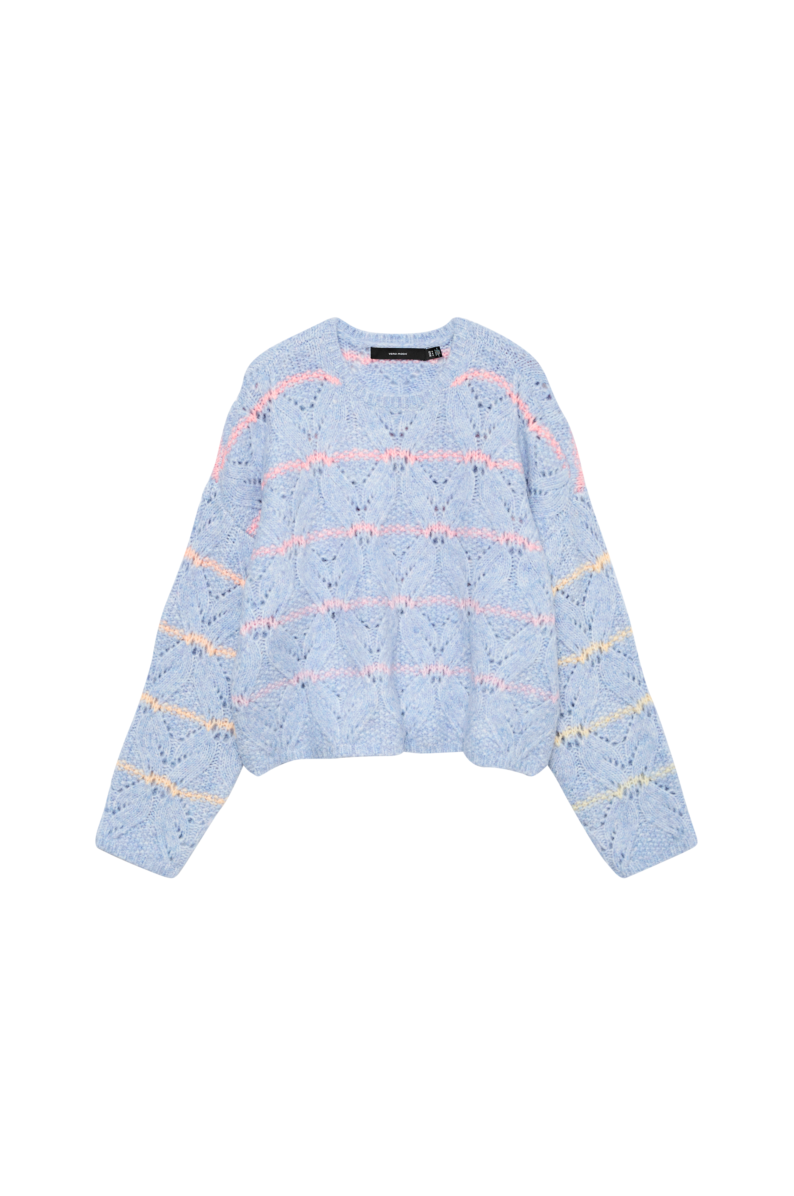 • Løststrikket, hulmønstret Pullover• Rund, ribstrikket halsudskæring• Smal ribstrik ved manchetterne og ved nederste kant