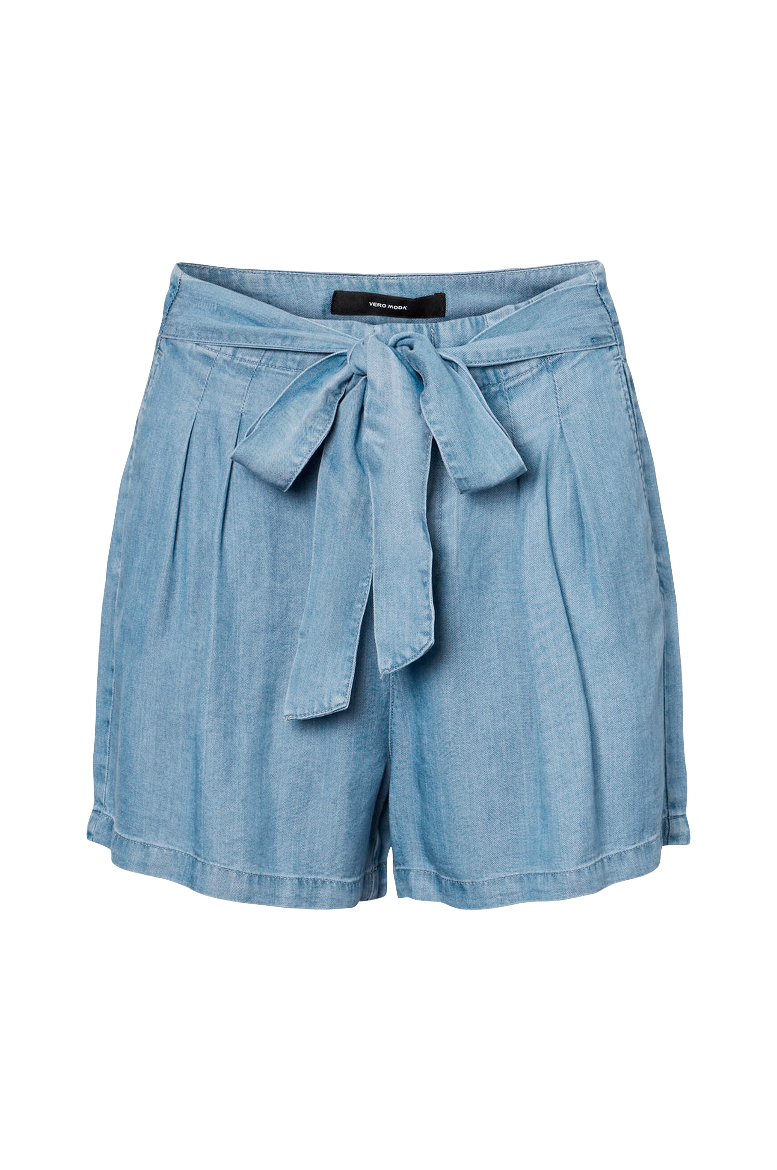 Shorts i blød, vævet kvalitet. Høj talje med bindebælte foran. Lommer i siderne og snydelommer bagpå. Gylp med lynlås og hægte og malle.