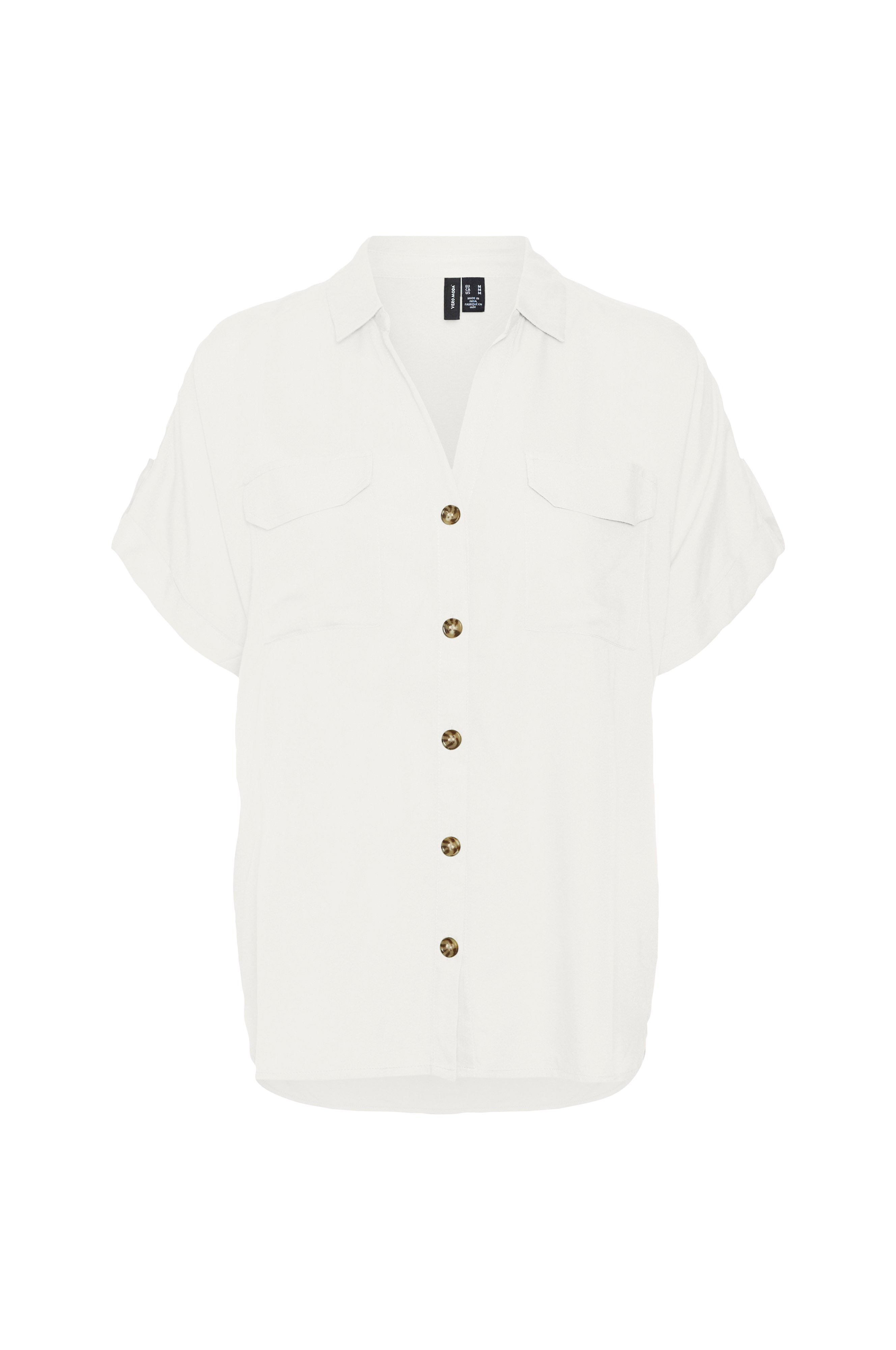 • Kortærmet skjorte i viskose• V-udskæring• Knapper foran• Syede ærmeafslutninger• Brystlommer