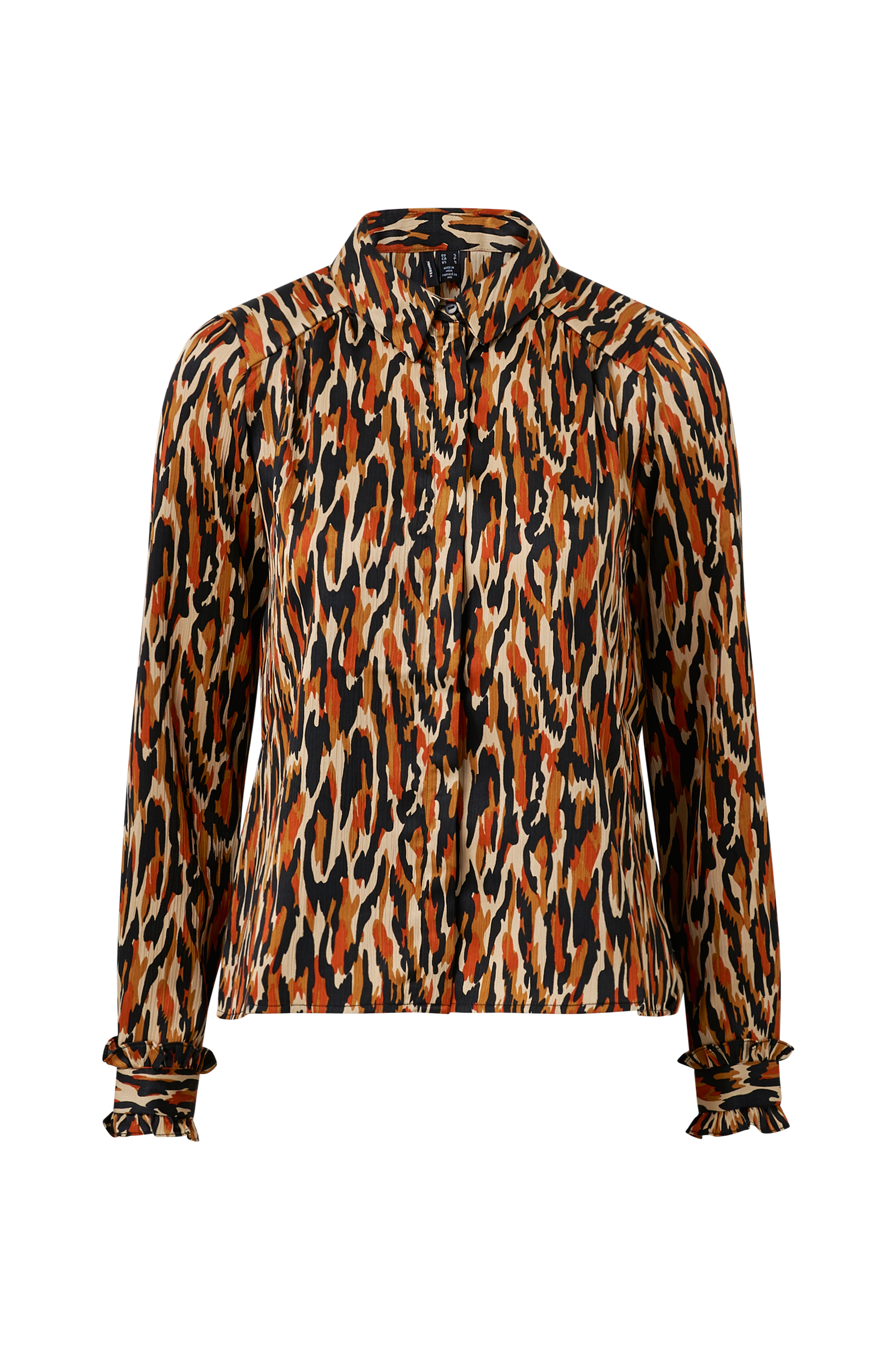Skjorte vmChloe LS Shirt Wvn fra Vero Moda i vævet kvalitet med let crepet struktur og retrofarver. Skjult stolpelukning foran, rynket søm på skuldrene og lange ærmer med ruche og knap ved manchetten. Skjorten er længere bagpå. Lagt læg i ryggen.