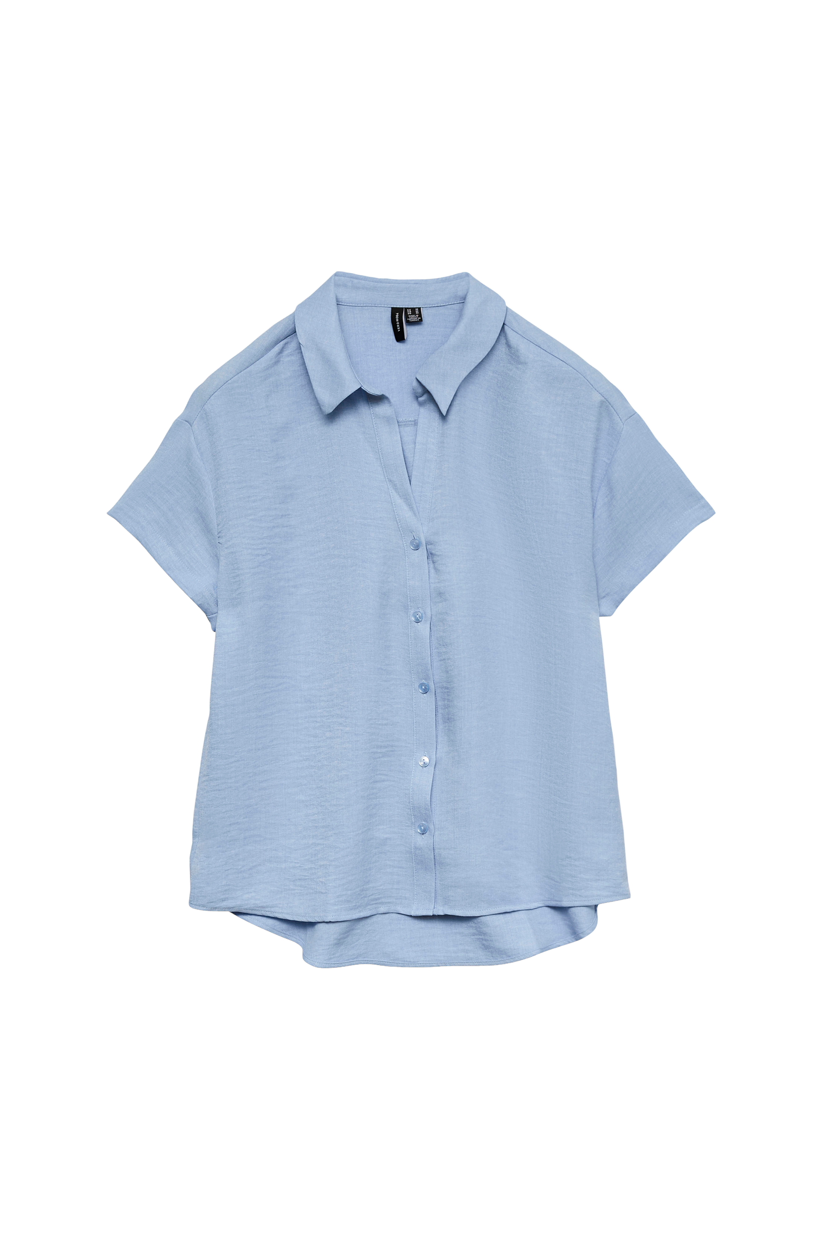 • V-udskæring med krave• Knaplukning• Korte ærmer