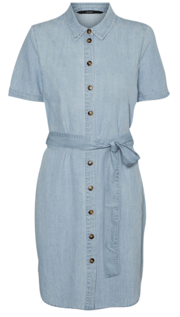 • Model med stropper og bindebælte ved taljen• Lille krave• Knapper hele vejen frem• Kort ærme med oprullet ved manchetterne• Afrundet søm• Længde: 92 cm i størrelse XS
