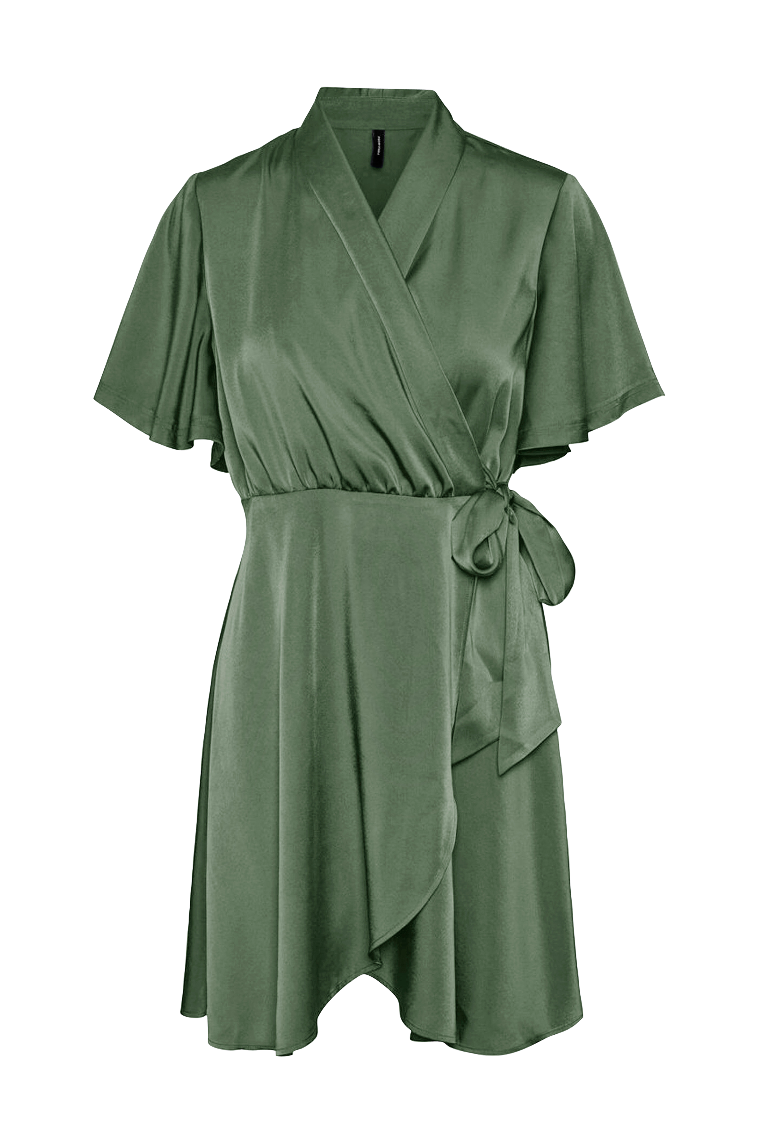 • Åben model i satin• Markeret talje med bindbart bånd• Bredt, kort ærme med svaj• Længde: 89 cm i størrelse S